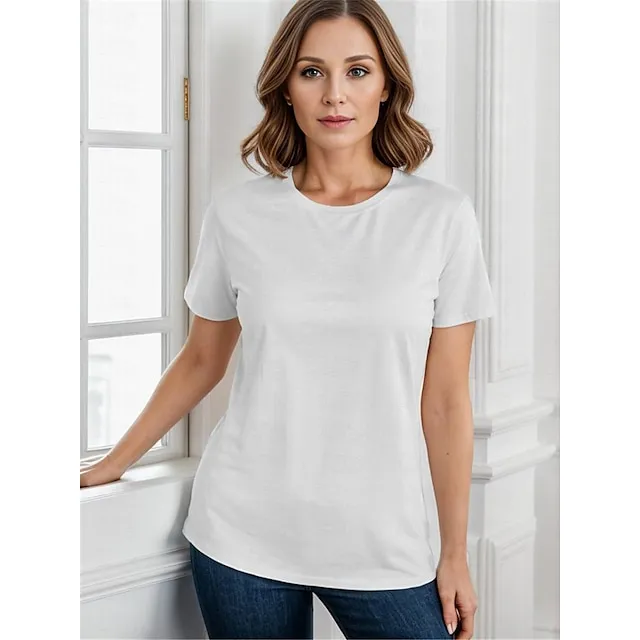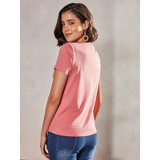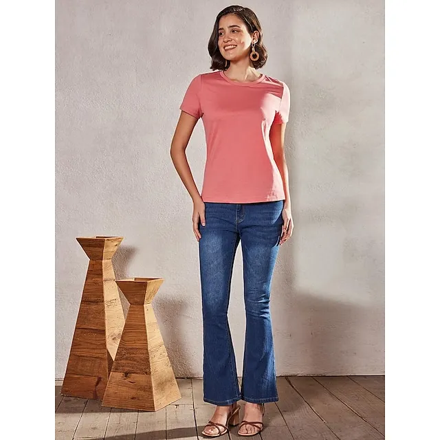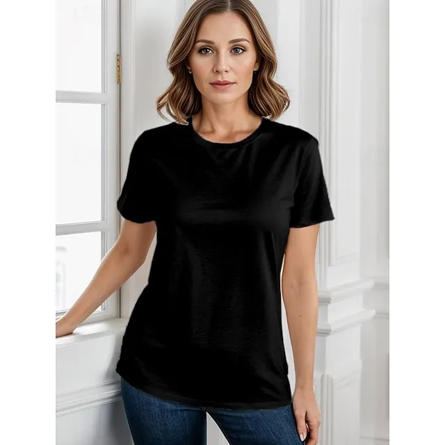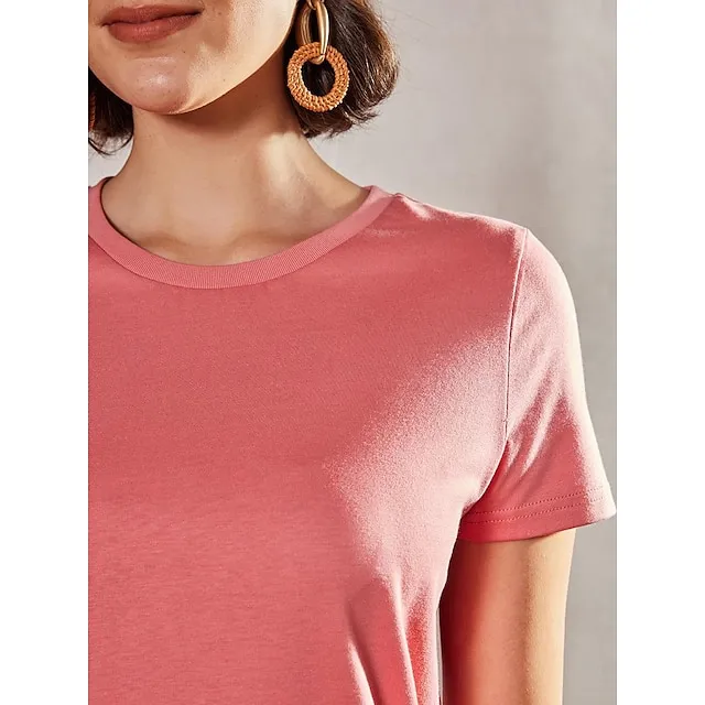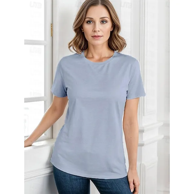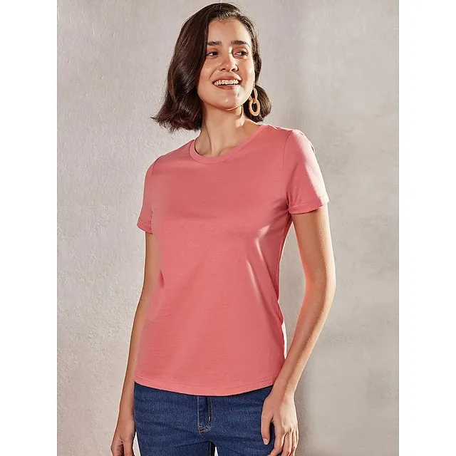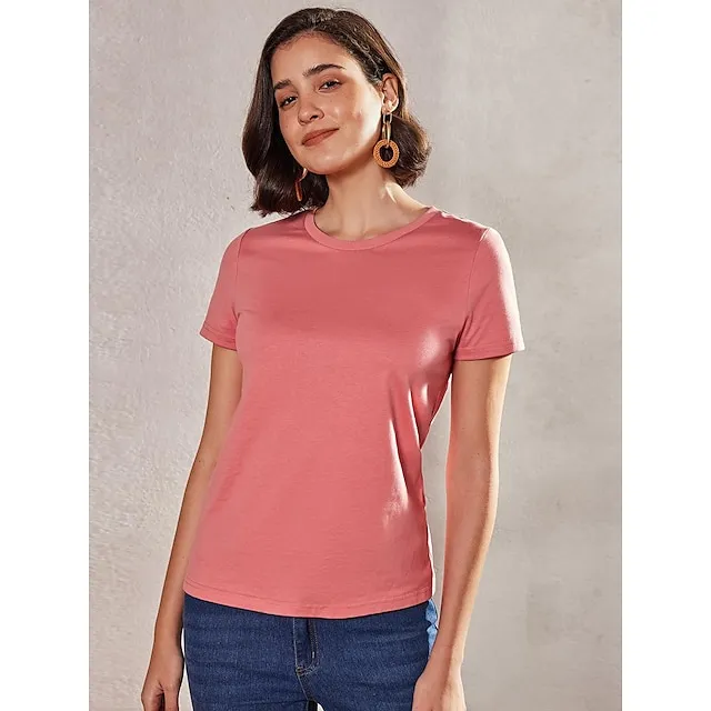 100% Cotton Women’s Summer Tops Casual Round-Neck Basic Tops Short Sleeve Plain Comfortable T-Shirt