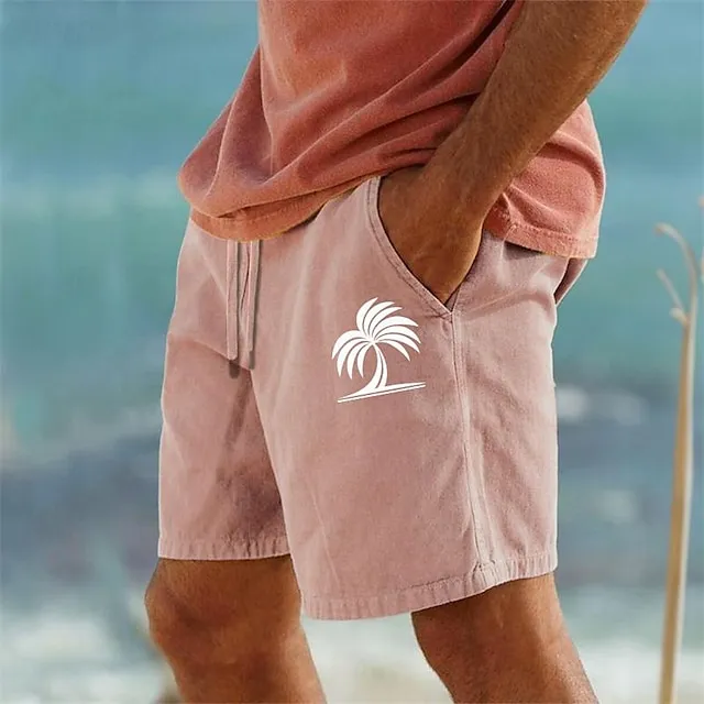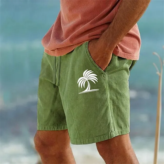 Coconut Tree Printed Men’s Cotton Shorts Summer Hawaiian Shorts Beach Shorts Drawstring Elastic Waist Print Comfort Breathable Short Outdoor Holiday Going out Clothing