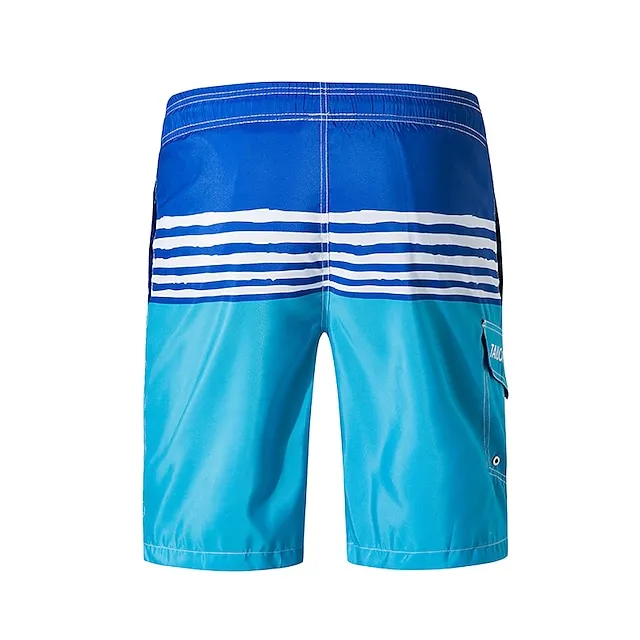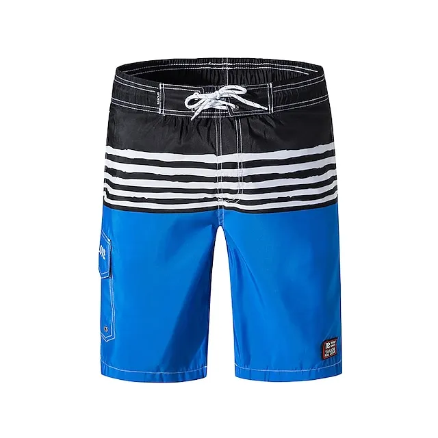 Men’s Bathing Suit Board Shorts Swim Shorts Swim Trunks Summer Shorts Drawstring with Mesh lining Elastic Waist Stripe Print Breathable Quick Dry Knee Length Casual Holiday Beach Fashion Classic Style