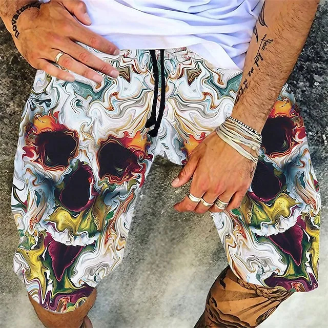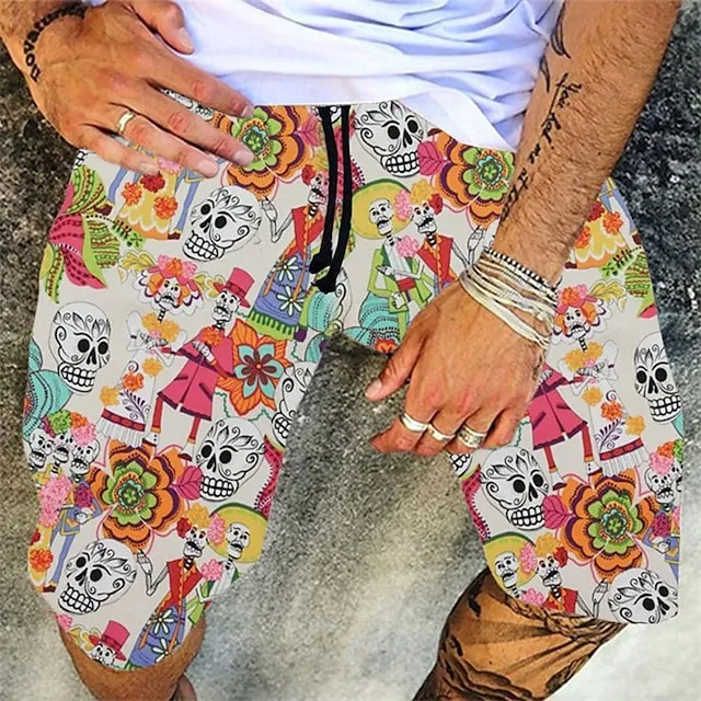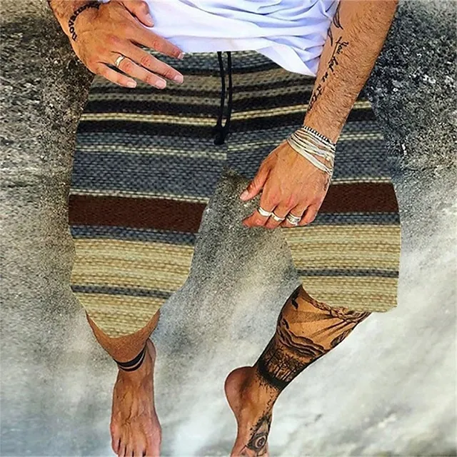 Men’s Board Shorts Swim Shorts Swim Trunks Summer Shorts Beach Shorts Drawstring Elastic Waist 3D Print Graphic Breathable Quick Dry Short Casual Daily Holiday Hawaiian Dark Brown Black-White