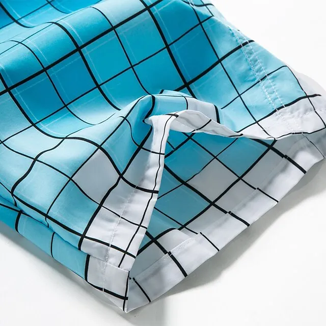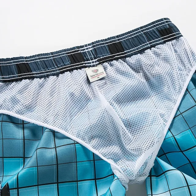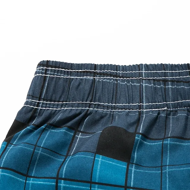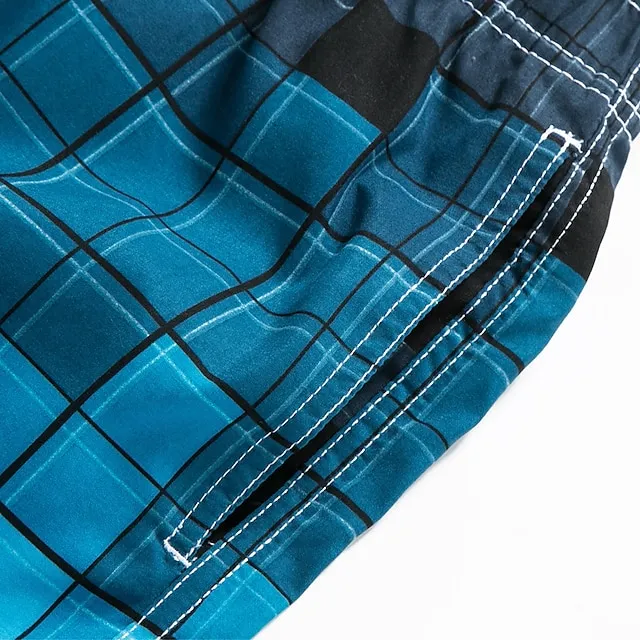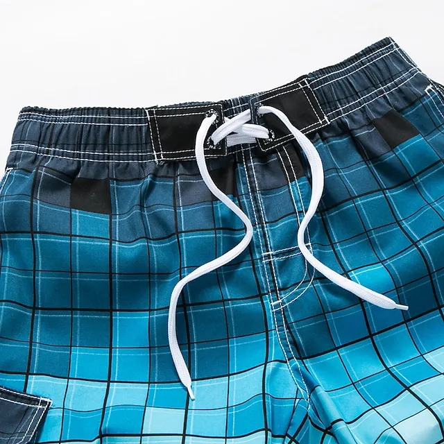 Men’s Board Shorts Swim Shorts Swim Trunks Summer Shorts Bermuda shorts Drawstring with Mesh lining Elastic Waist Geometric Lattice Comfort Breathable Short Casual Daily Beach Fashion Streetwear Blue