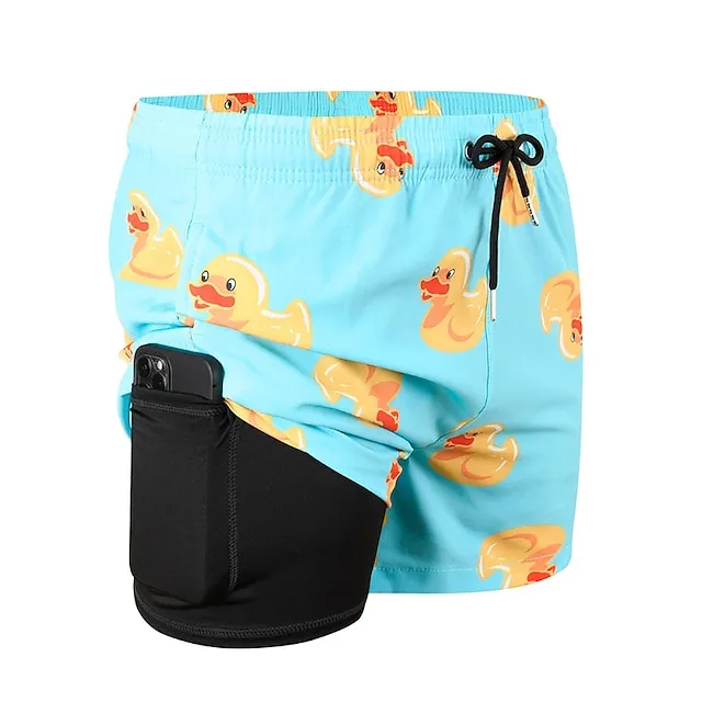 Men’s Board Shorts Swim Shorts Swim Trunks Summer Shorts Drawstring Elastic Waist 2 in 1 Graphic Comfort Breathable Short Casual Holiday Beach Hawaiian Stylish Gradient blue Black
