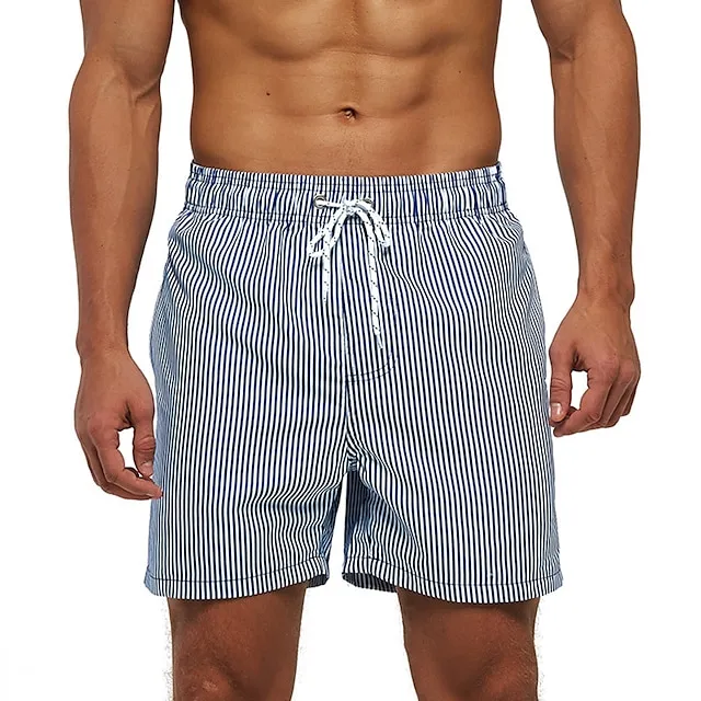 Men’s Board Shorts Swim Shorts Swim Trunks Summer Shorts Beach Shorts Drawstring with Mesh lining Elastic Waist Graphic Stripe Breathable Quick Dry Short Casual Daily Holiday Hawaiian Boho Red Blue