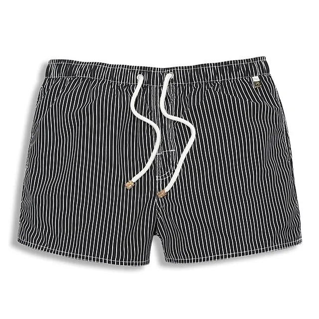 Men’s Board Shorts Swim Shorts Swim Trunks Summer Shorts Pocket Drawstring Elastic Waist Stripe Comfort Breathable Short Casual Daily Holiday Hawaiian Classic Style Black White Inelastic