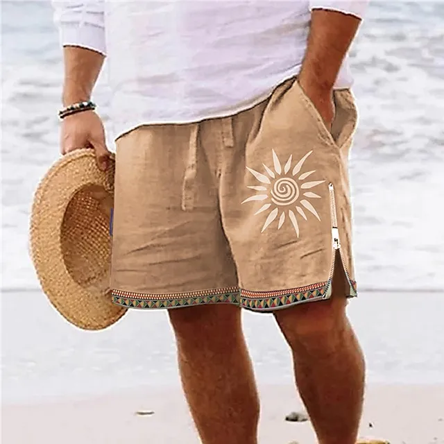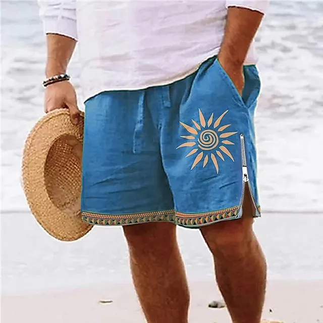 Men’s Board Shorts Swim Shorts Swim Trunks Zipper Pocket Elastic Waist Sun Graphic Prints Comfort Breathable Short Casual Daily Holiday Streetwear Hawaiian Blue Brown Micro-elastic