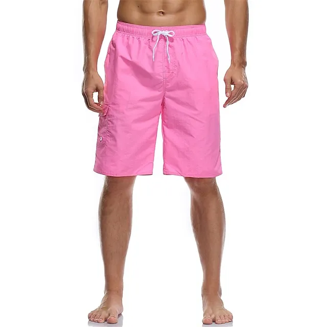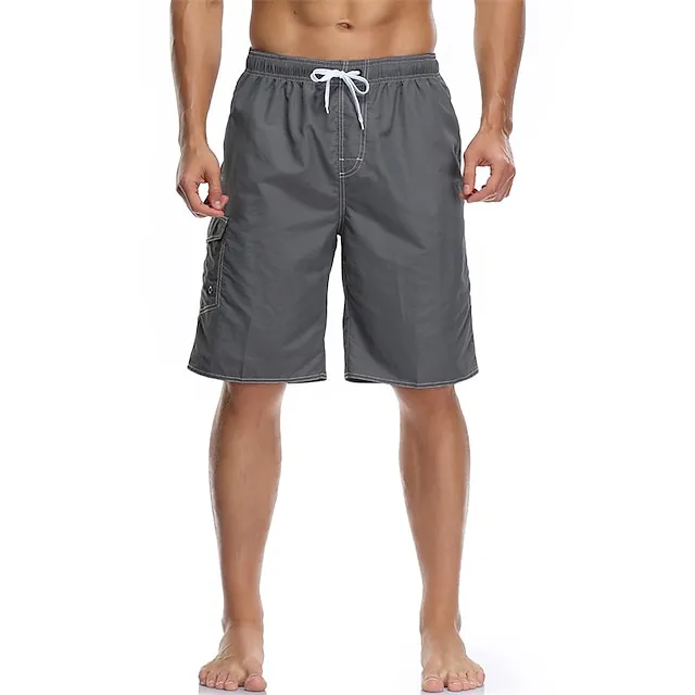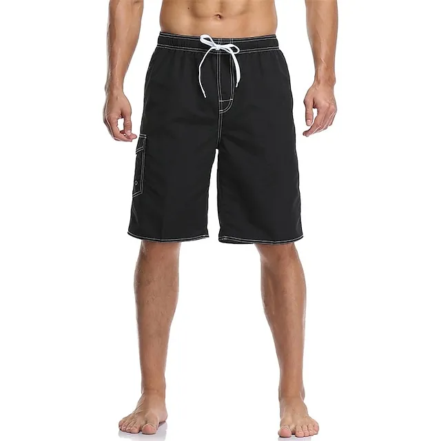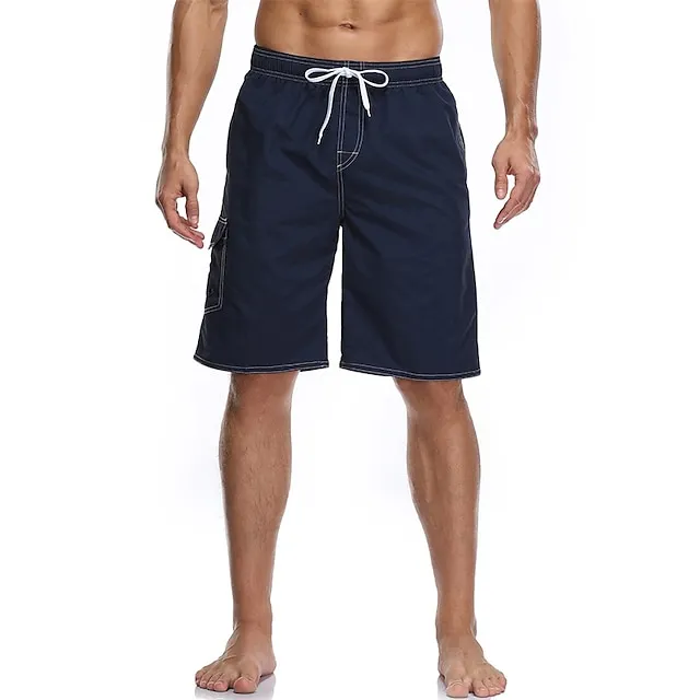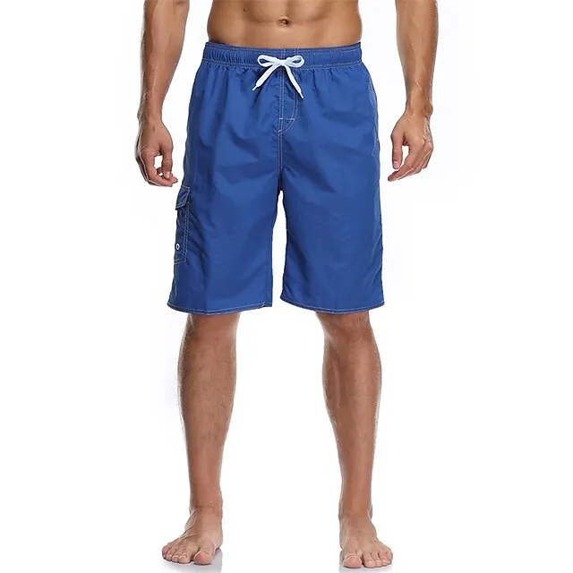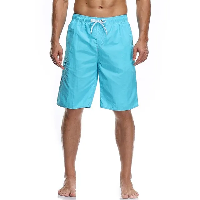 Men’s Board Shorts Swim Trunks Going out Weekend Breathable Quick Dry Drawstring Elastic Waist with Pockets Plain Knee Length Gymnatics Casual Activewear Lake blue Black
