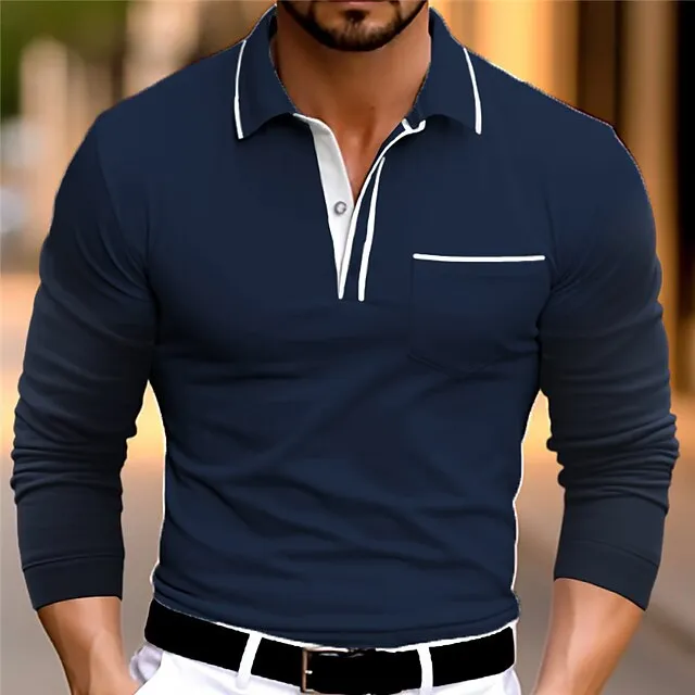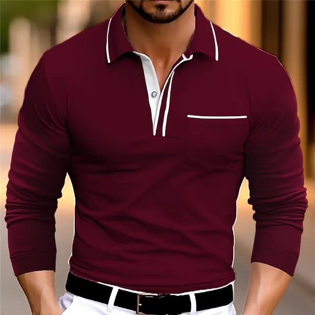 Men’s Business Polo Golf Shirt Casual Sports Lapel Long Sleeve Fashion Basic Plain Button Spring & Fall Regular Fit Wine Dark Blue Gray Business Polo
