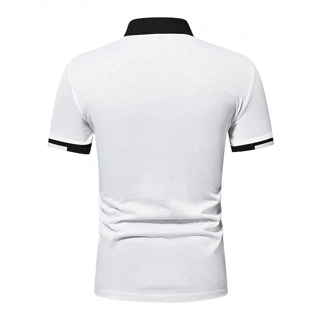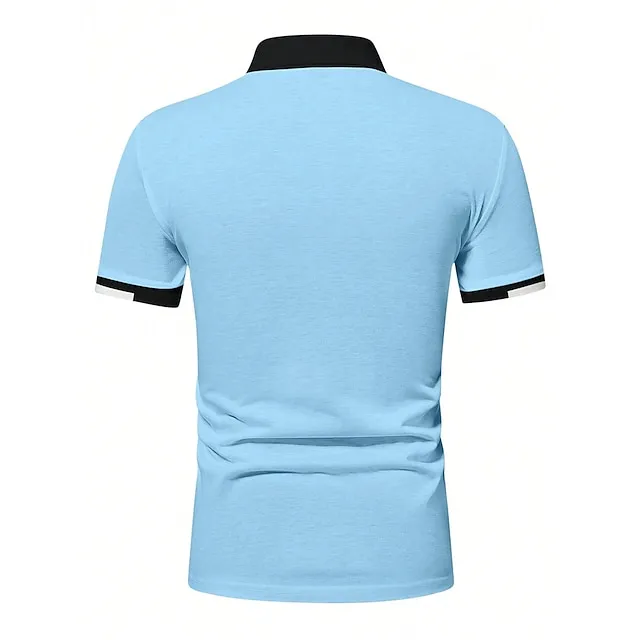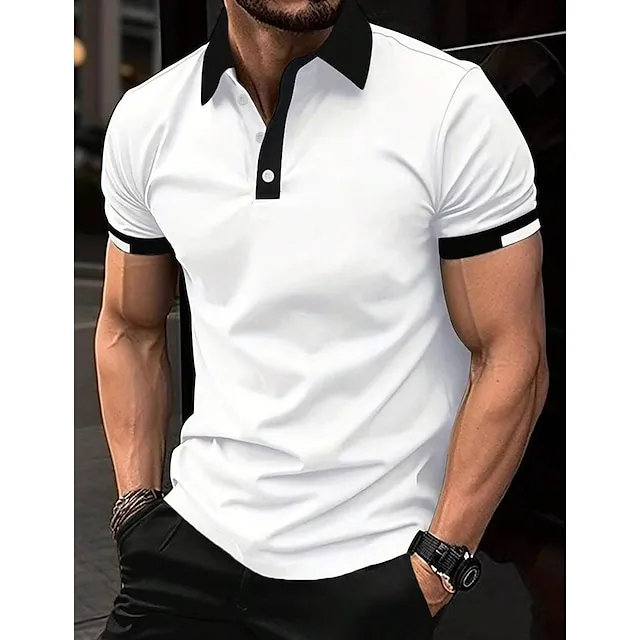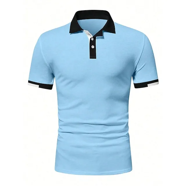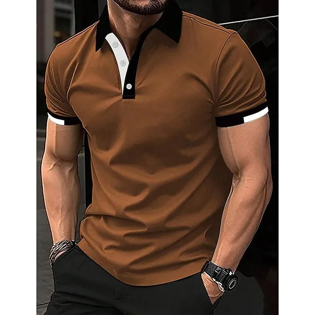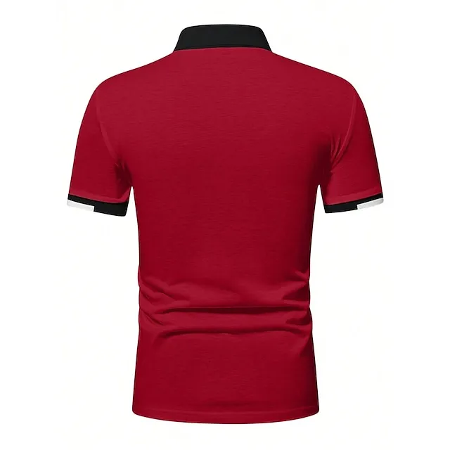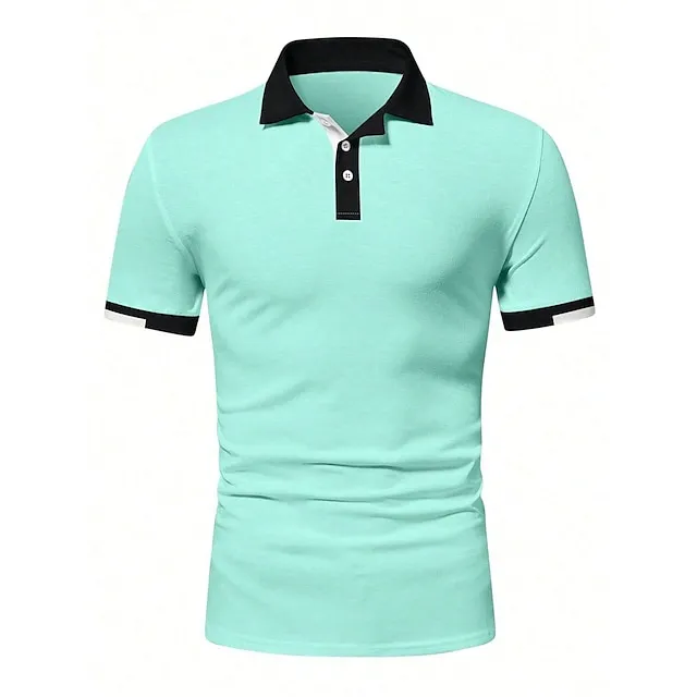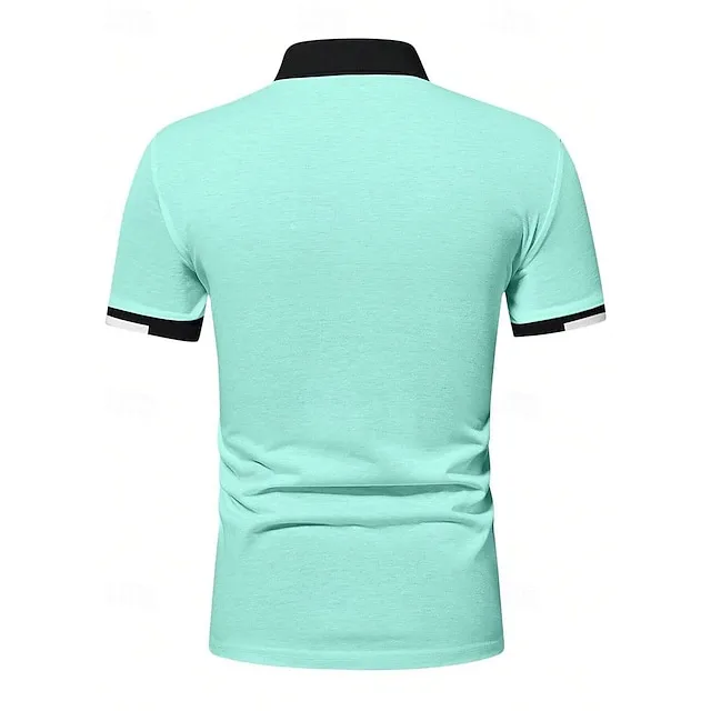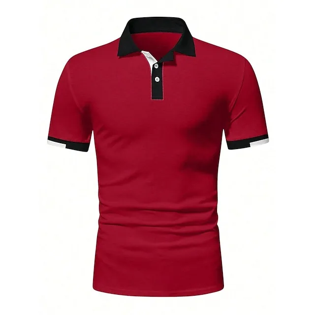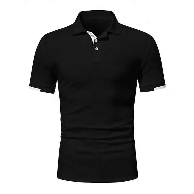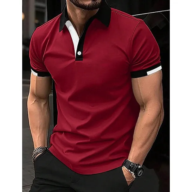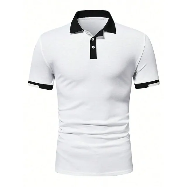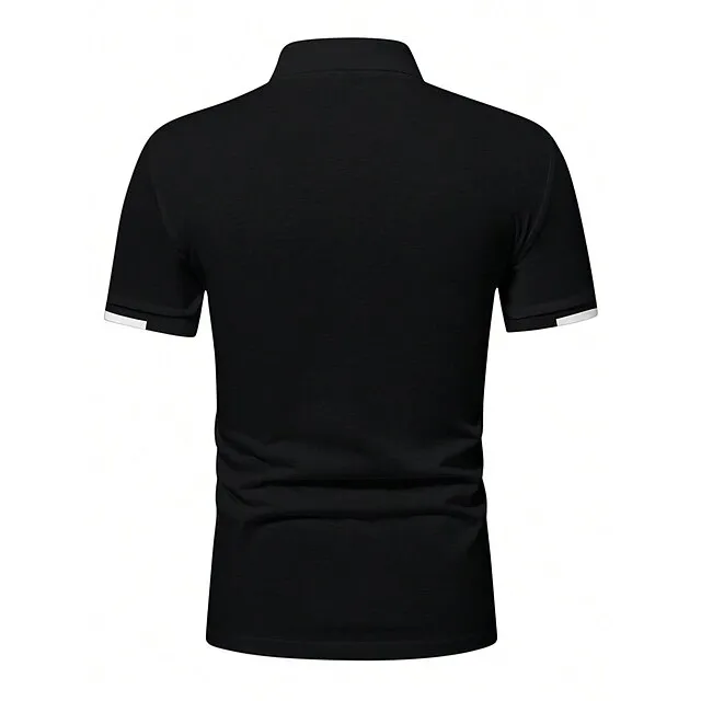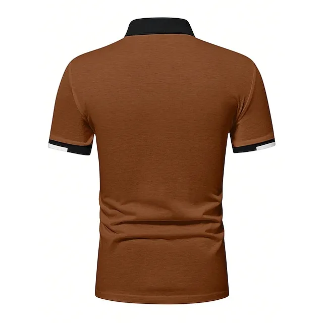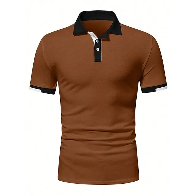Men’s Button Up Polos Golf Shirt Casual Holiday Ribbed Polo Collar Short Sleeve Fashion Basic Solid Color Patchwork Summer Regular Fit Black White Red Blue Brown Green Button Up Polos