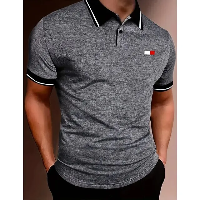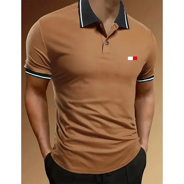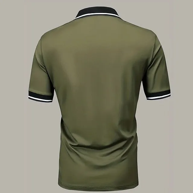 Men’s Button Up Polos Polo Shirt Casual Holiday Lapel Short Sleeve Fashion Basic Plain Classic Summer Regular Fit Black Army Green Khaki Grey Button Up Polos