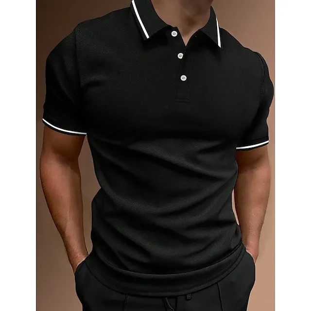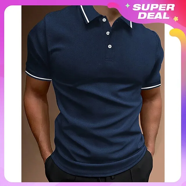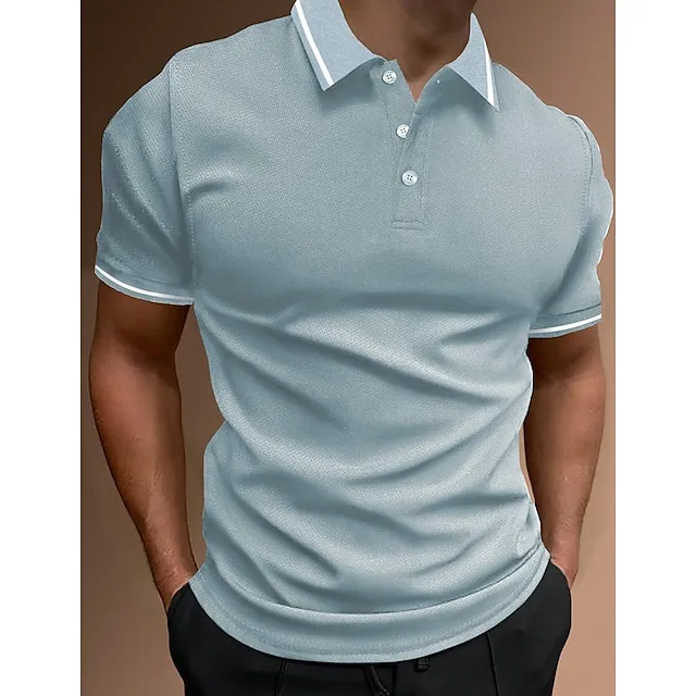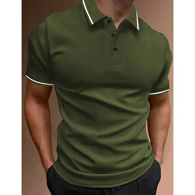 Men’s Button Up Polos Polo Shirt Casual Holiday Lapel Short Sleeve Fashion Basic Plain Classic Summer Regular Fit Light Sky Blue Black Army Green Dark Navy Brown Grey Button Up Polos