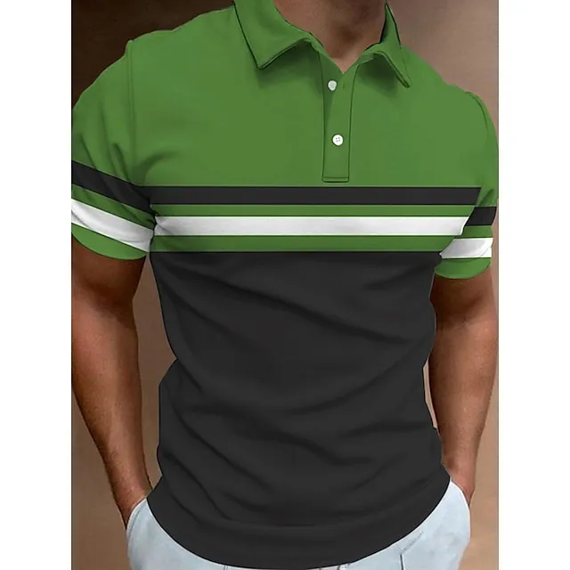 Men’s Button Up Polos Polo Shirt Casual Sports Lapel Short Sleeve Fashion Basic Color Block Button Summer Regular Fit Apple Green Lake blue Army Green Blue Purple Coffee Button Up Polos