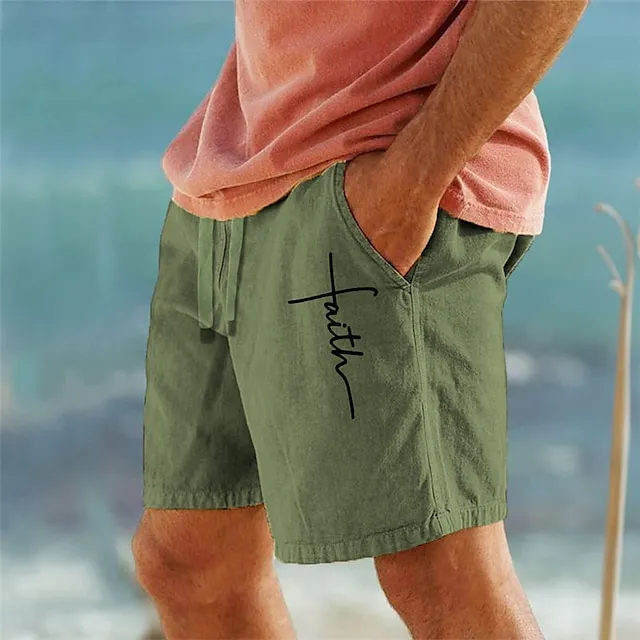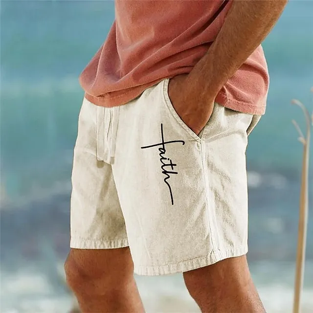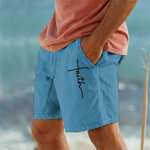 Men’s Cotton Linen Shorts Summer Shorts Casual Shorts Drawstring Elastic Waist Front Pocket Graphic Prints Cross Breathable Soft Short Outdoor Casual Daily Streetwear Designer White Blue Micro-elastic