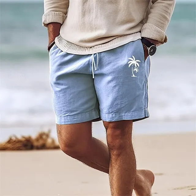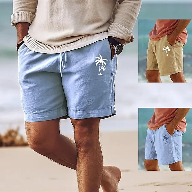 Men’s Cotton Shorts Summer Shorts Beach Shorts Drawstring Elastic Waist 3D Print Graphic Coconut Tree Breathable Soft Short Casual Daily Holiday Streetwear Hawaiian Black White Micro-elastic