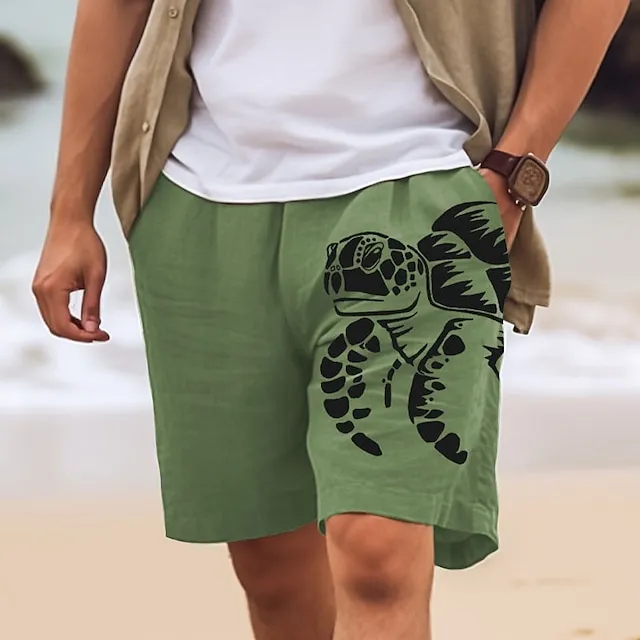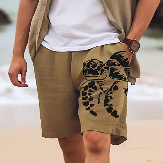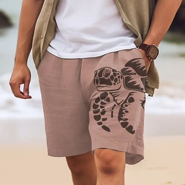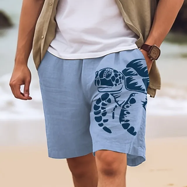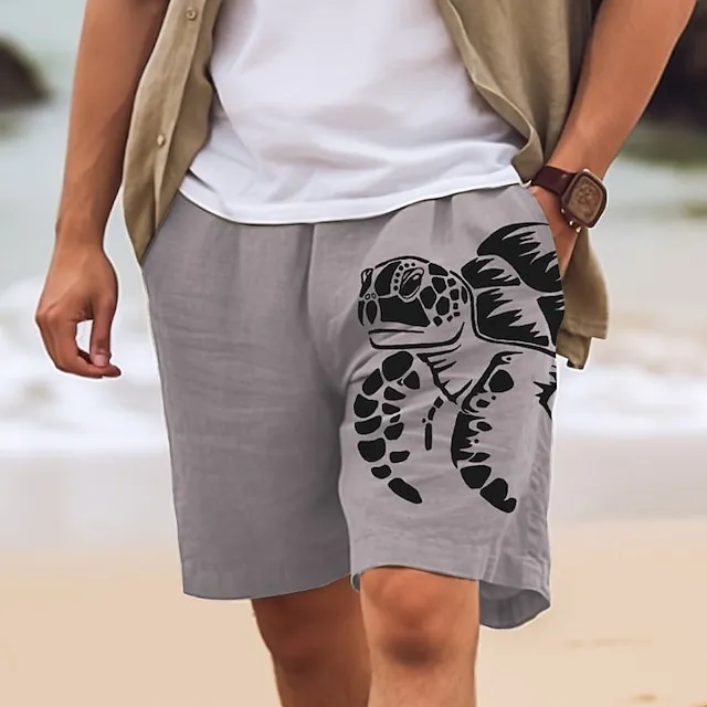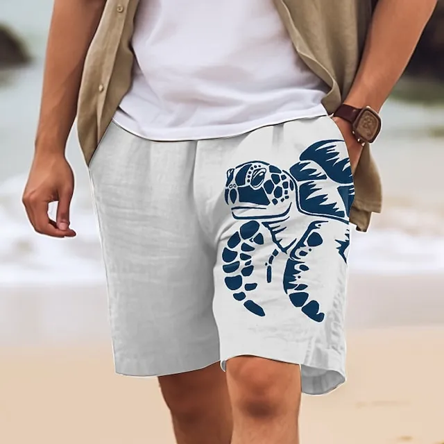 3D Animal Print Men’s Cotton Shorts Summer Hawaiian Shorts Beach Shorts Drawstring Elastic Waist Breathable Soft Short Casual Daily Holiday Streetwear