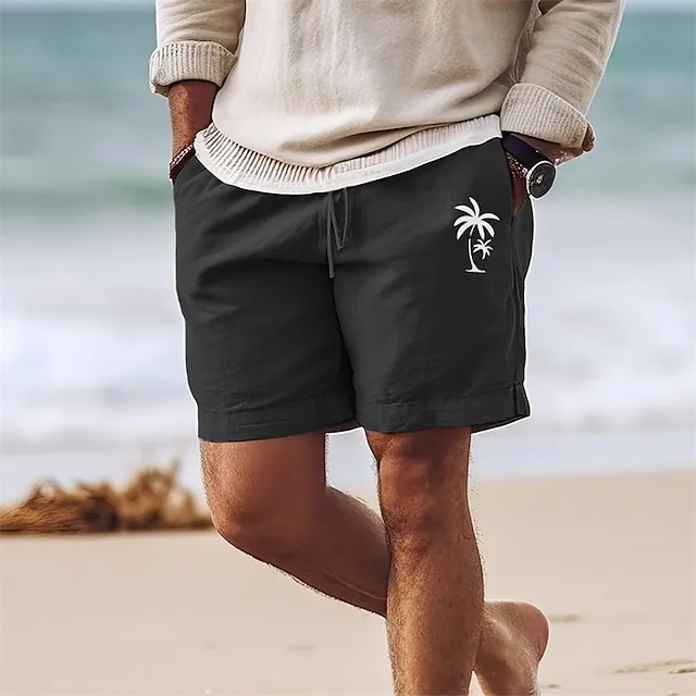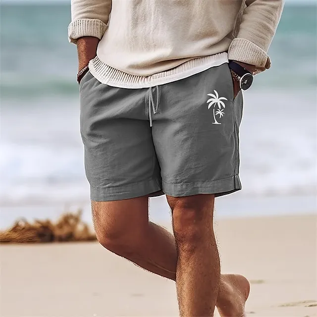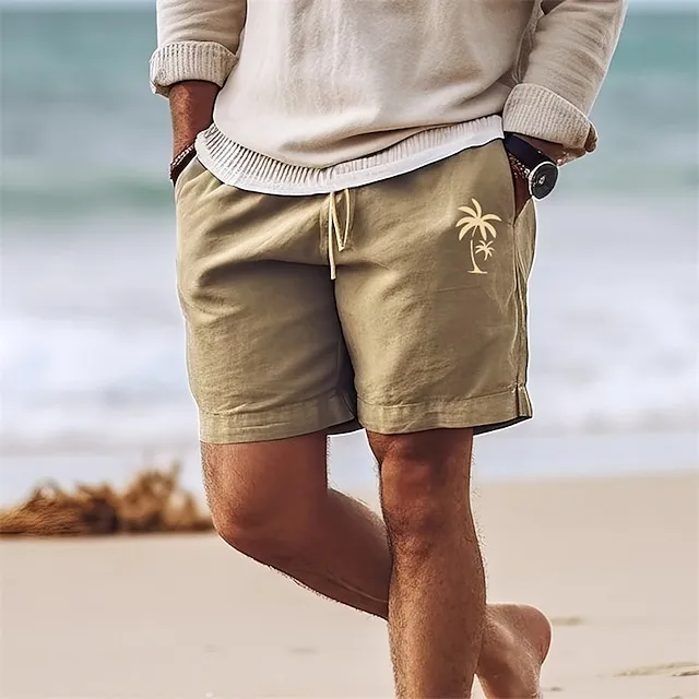 Coconut Tree Men’s Cotton Linen Shorts Summer Hawaiian Shorts Beach Shorts Print Drawstring Elastic Waist Breathable Soft 10% Linen Shorts Casual Daily Holiday Streetwear