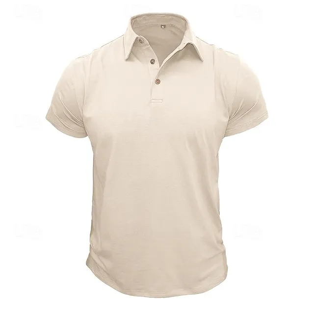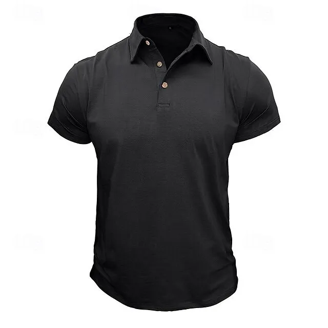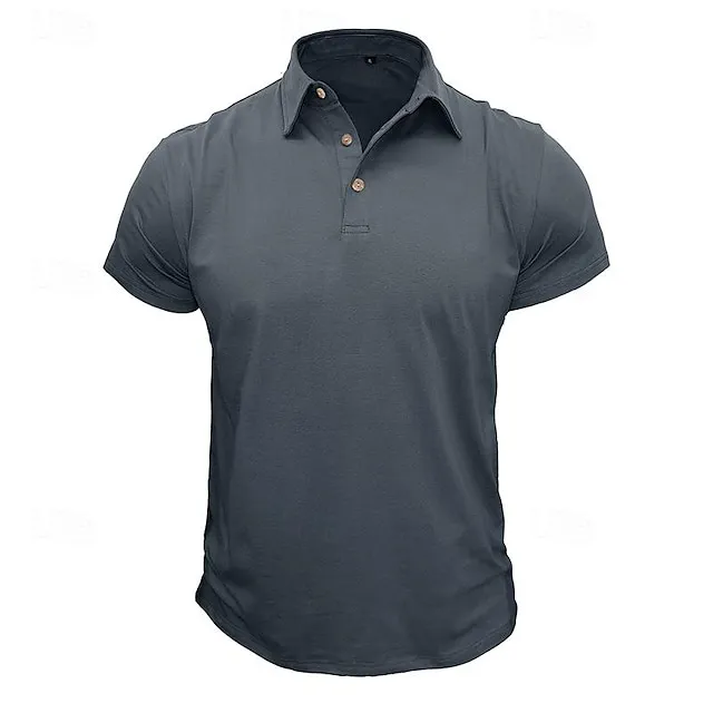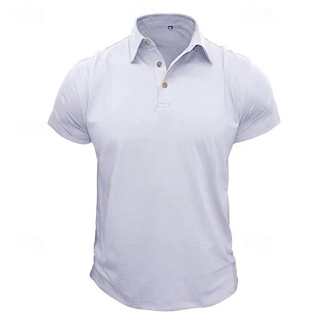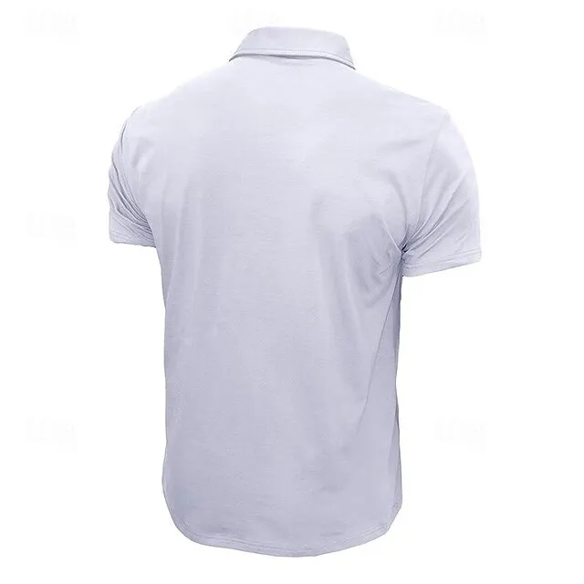 Men’s Golf Shirt Golf Polo Work Casual Lapel Short Sleeve Basic Modern Plain Button Spring & Summer Regular Fit Dark Gray Black White Burgundy Royal Blue Light Grey Golf Shirt