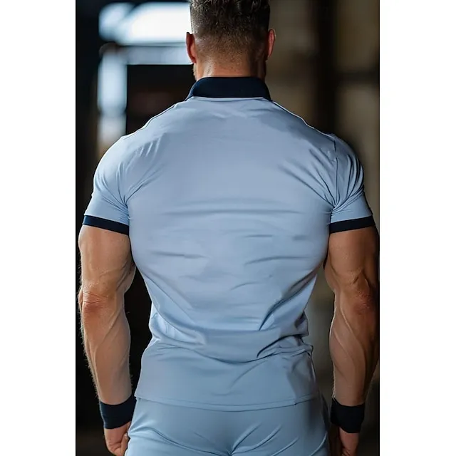 Men’s Polo Golf Shirt Business Casual Classic Short Sleeve Fashion Color Block Button Pocket Summer Spring Regular Fit Light Blue Polo