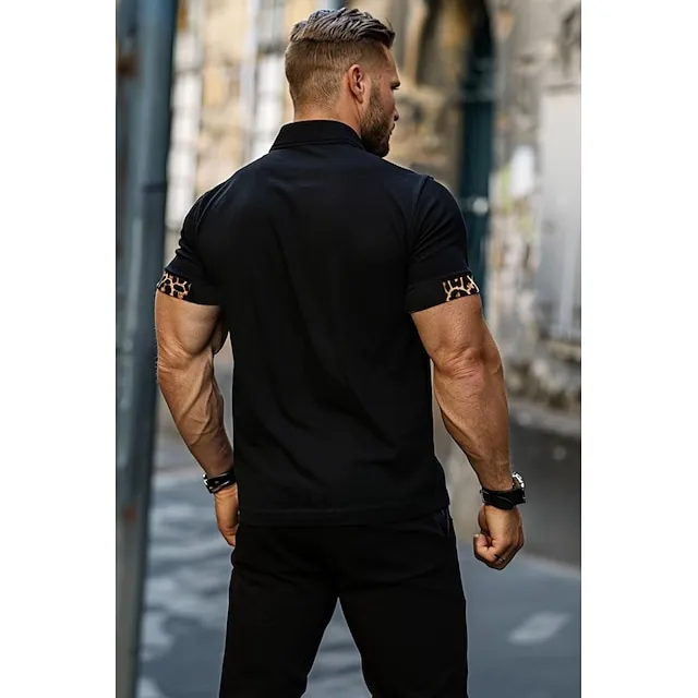 Men’s Polo Golf Shirt Business Casual Classic Short Sleeve Fashion Solid Color Leopard Pocket Summer Spring Regular Fit Black Polo
