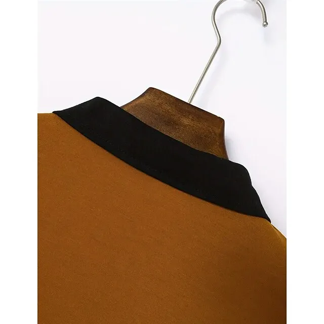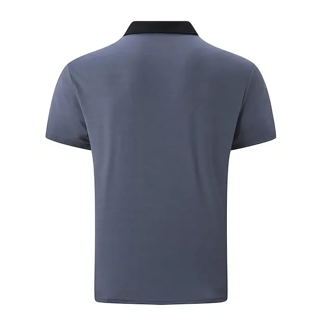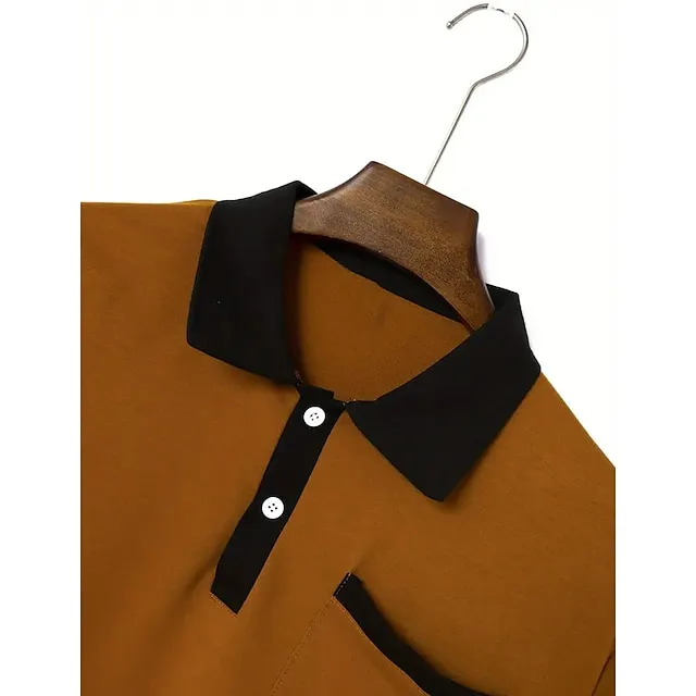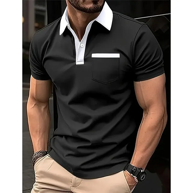 Men’s Polo Shirt Button Up Polos Business Casual Lapel Short Sleeve Fashion Basic Color Block Patchwork Pocket Summer Regular Fit Black White Navy Blue Brown Gray Polo Shirt