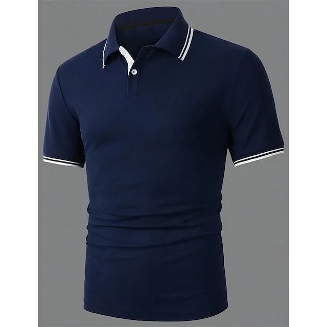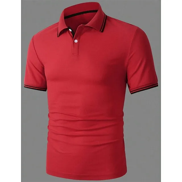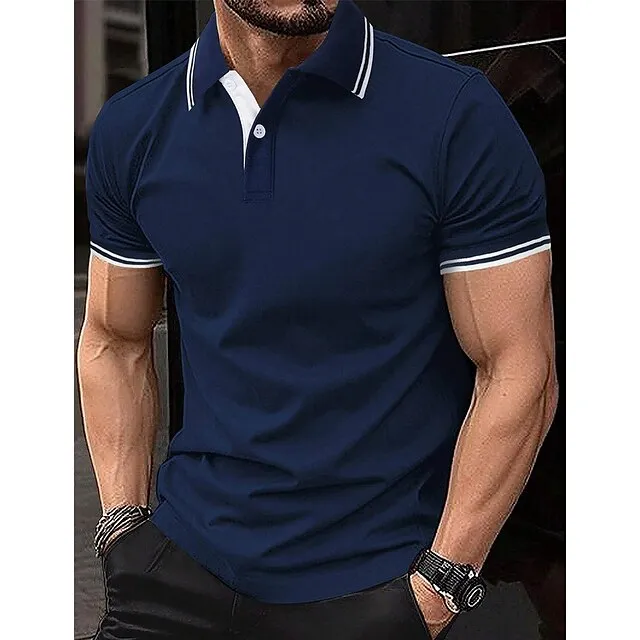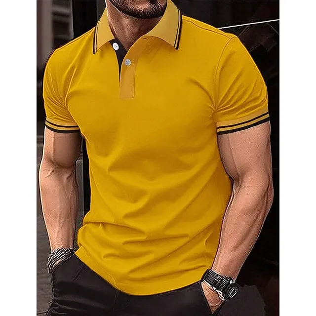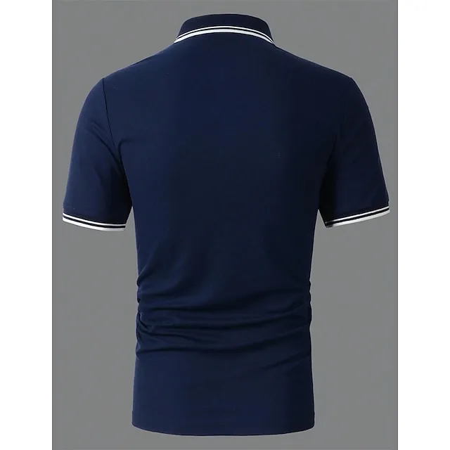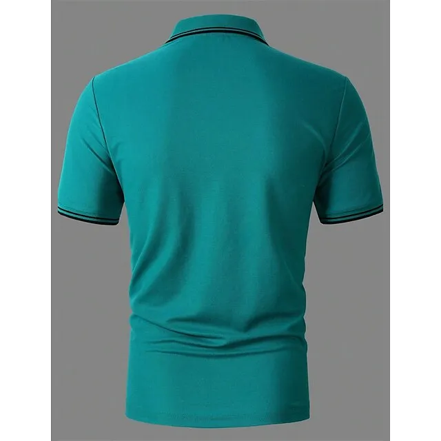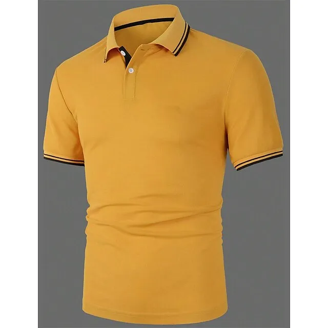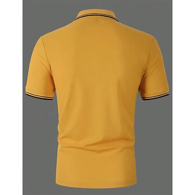 Men’s Polo Shirt Button Up Polos Business Casual Lapel Short Sleeve Fashion Basic Plain Button Summer Regular Fit White Yellow Red Navy Blue Royal Blue Blue Polo Shirt