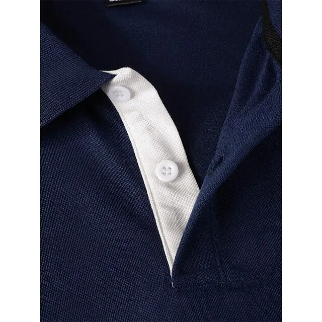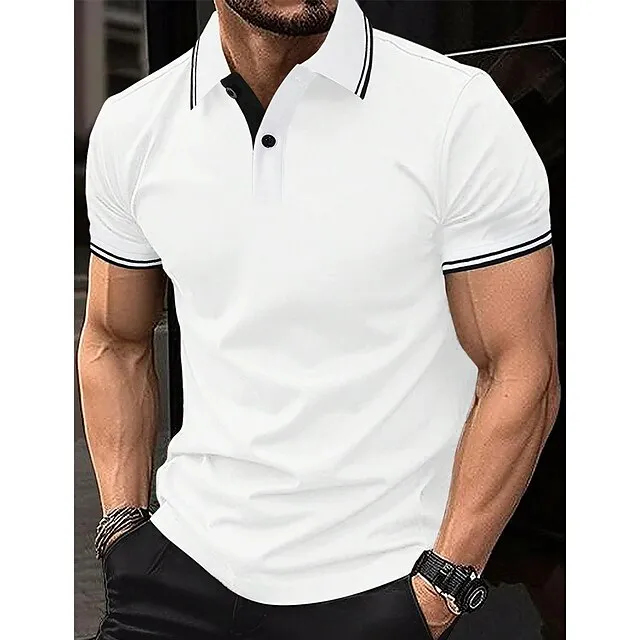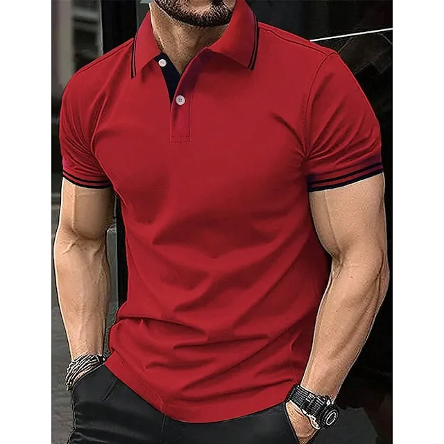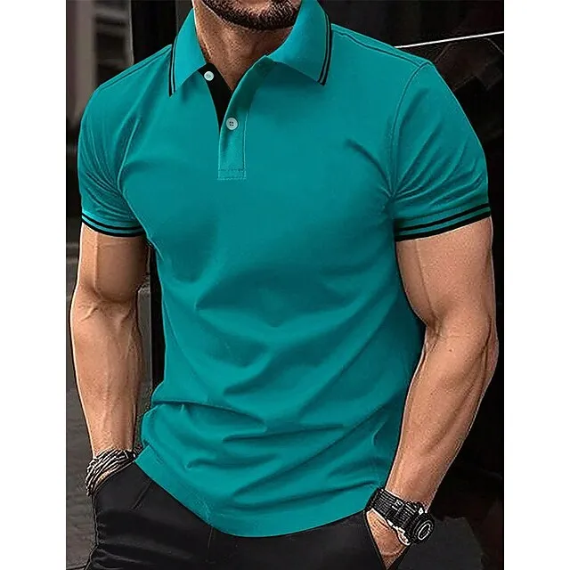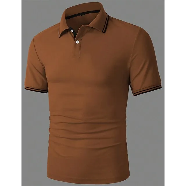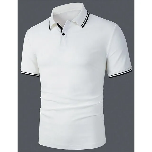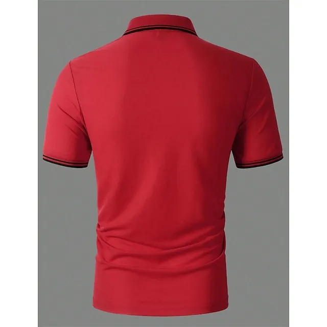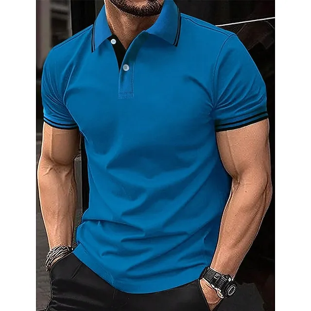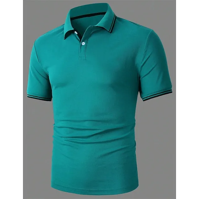 Men’s Polo Shirt Button Up Polos Business Casual Lapel Short Sleeve Fashion Basic Plain Button Summer Regular Fit White Yellow Red Navy Blue Royal Blue Blue Polo Shirt