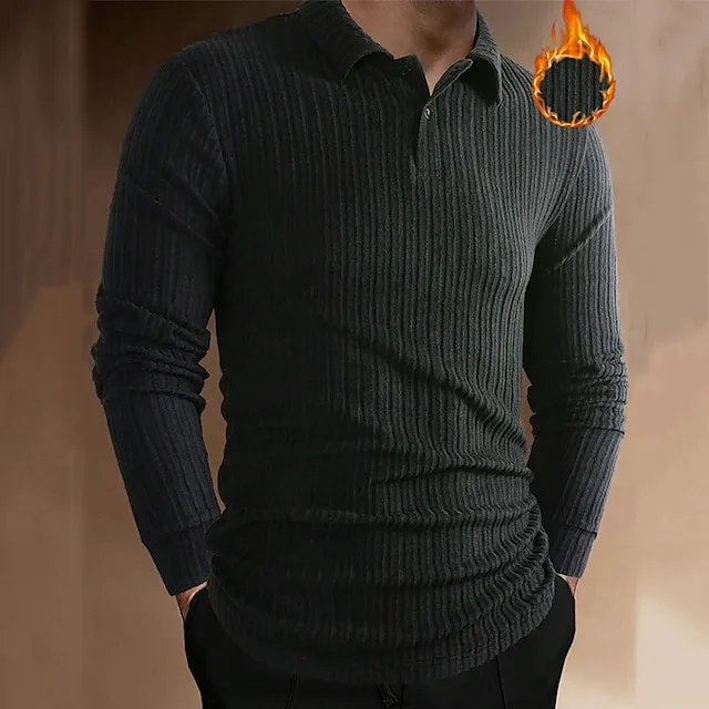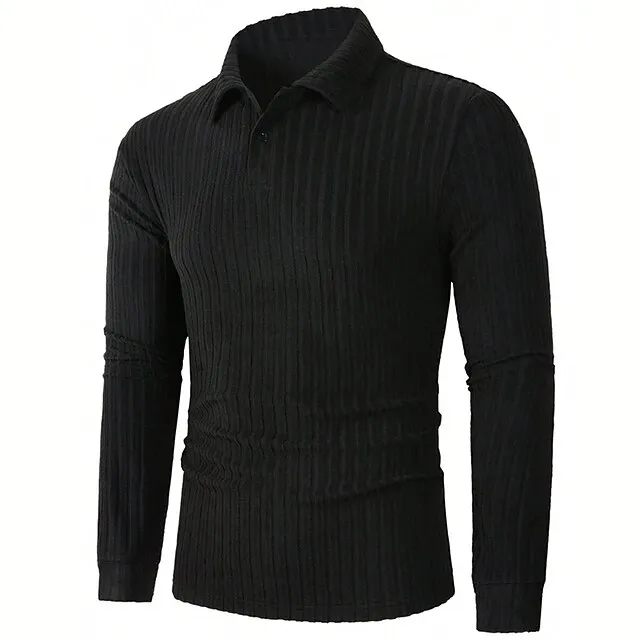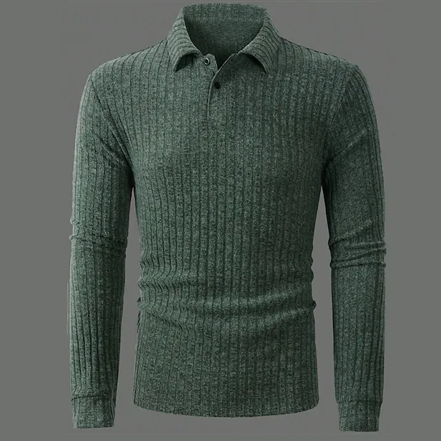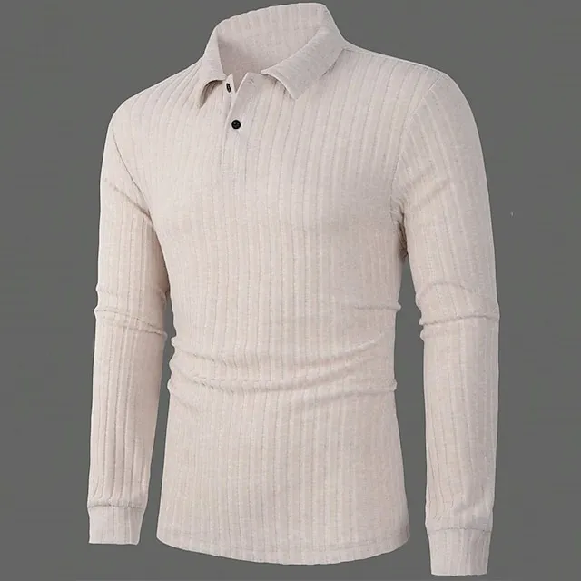 Men’s Polo Shirt Button Up Polos Casual Holiday Classic Long Sleeve Fashion Basic Plain Quick Dry Summer Spring Regular Fit Deep Green Black White Khaki Polo Shirt