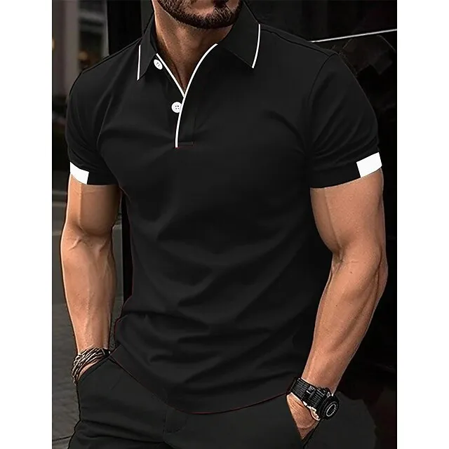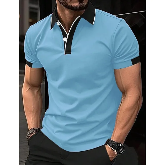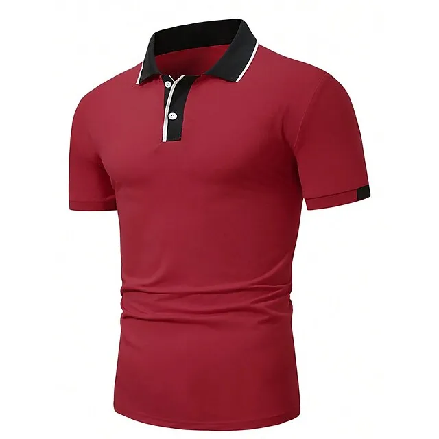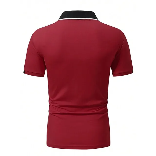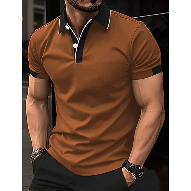 Men’s Polo Shirt Button Up Polos Casual Sports Lapel Short Sleeve Fashion Basic Color Block Patchwork Summer Regular Fit Black Red Sky Blue Brown Polo Shirt