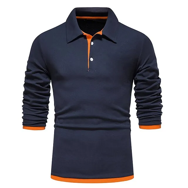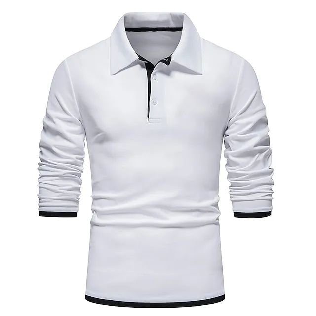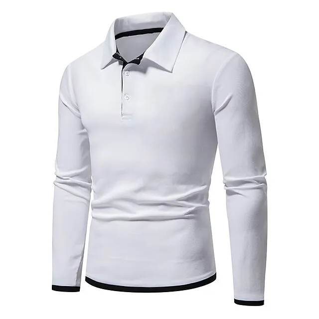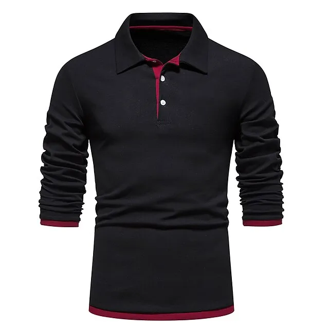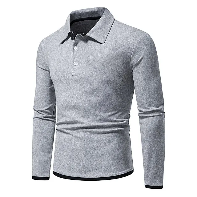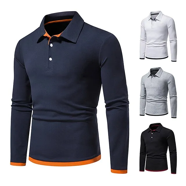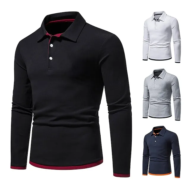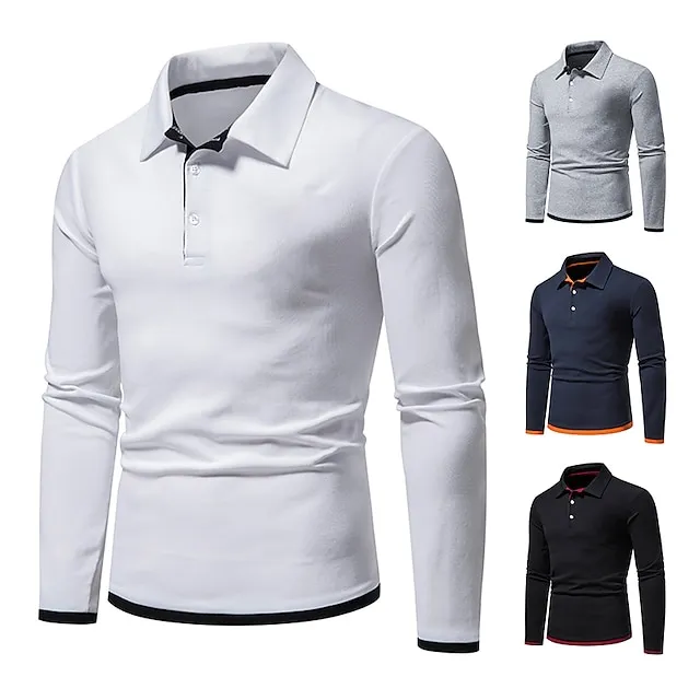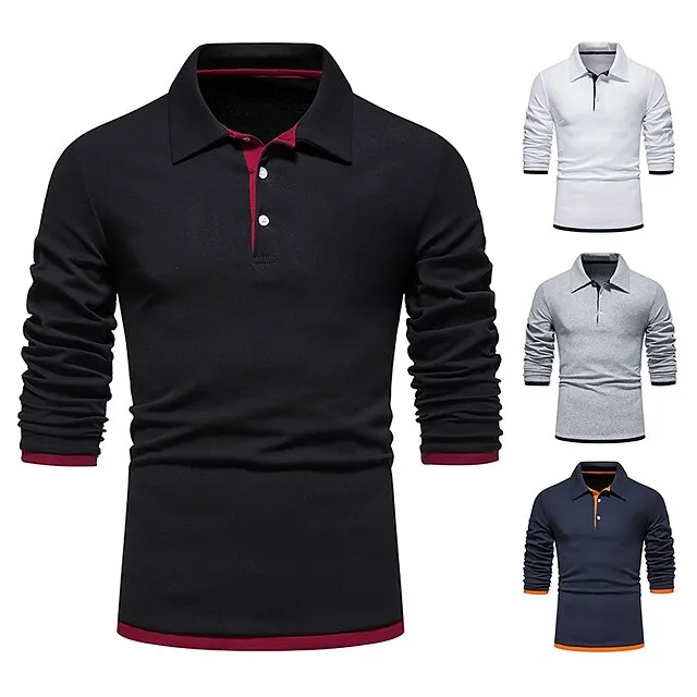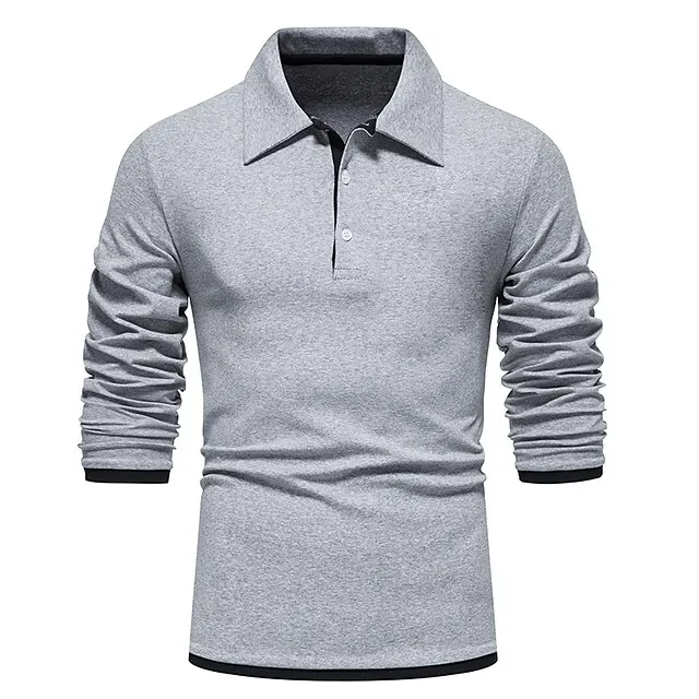 Men’s Polo Shirt Golf Shirt Casual Daily Classic Collar Button Down Collar Long Sleeve Casual Color Block Button Front Spring & Summer Regular Fit Black White Navy Blue Light Grey Polo Shirt