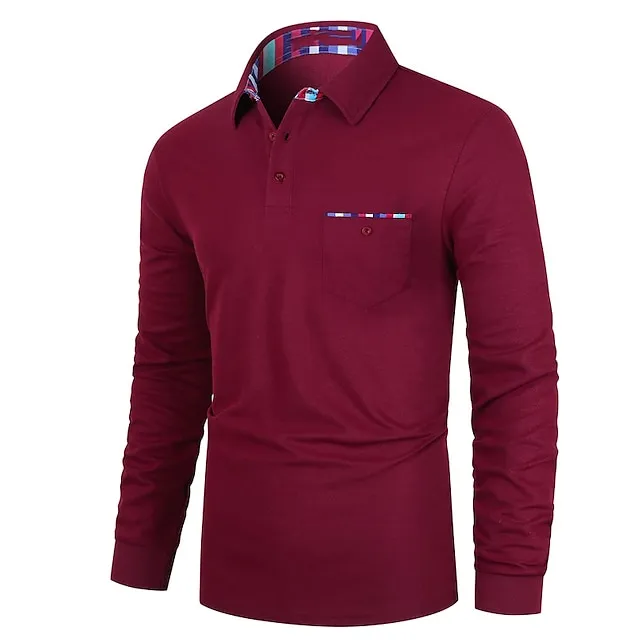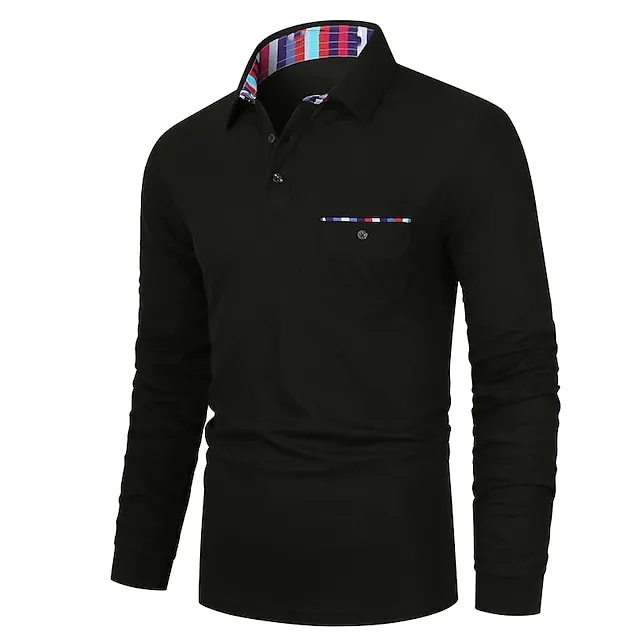 Men’s Polo Shirt Golf Shirt Casual Holiday Classic Long Sleeve Fashion Basic Plain Quick Dry Summer Regular Fit Fire Red Black Army Green Dark Navy Grey Polo Shirt