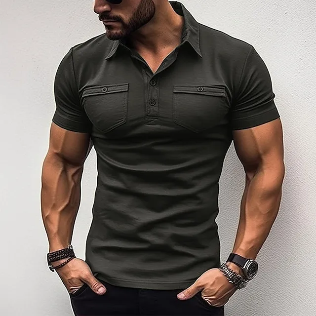 Men’s Polo Shirt Golf Shirt Casual Holiday Lapel Short Sleeve Fashion Basic Plain Classic Summer Regular Fit Black Army Green Navy Blue Grey Polo Shirt