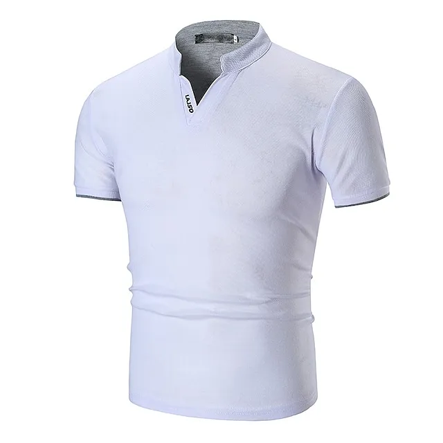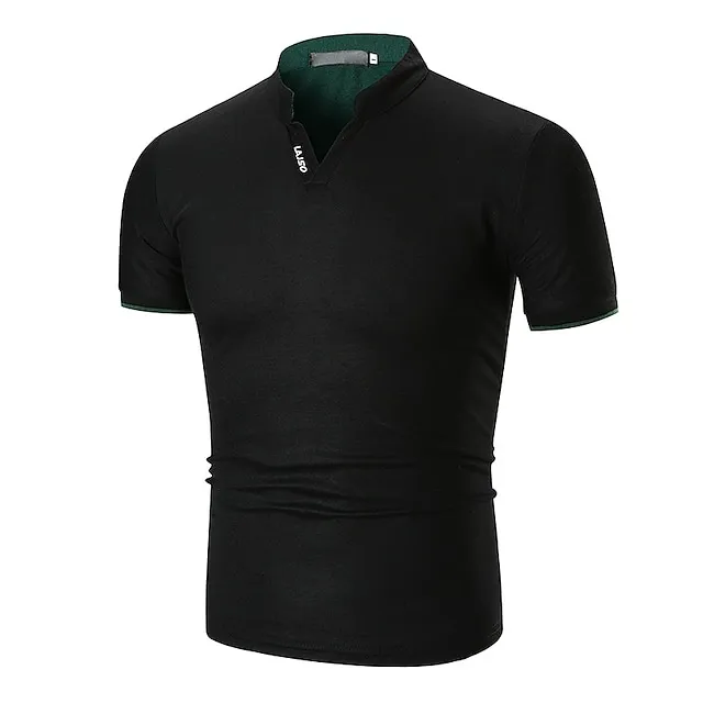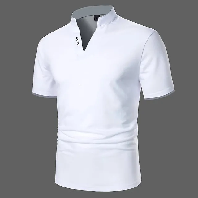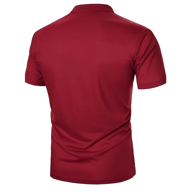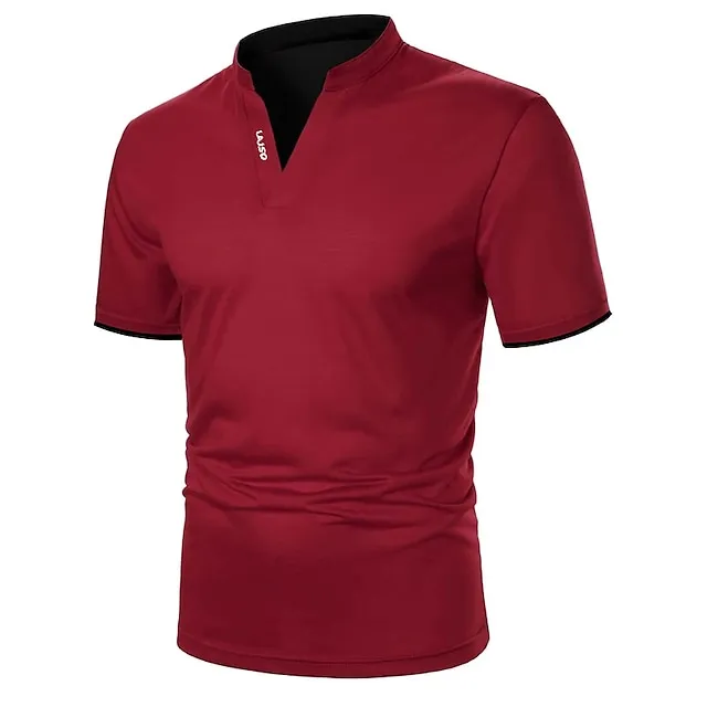 Men’s Polo Shirt Golf Shirt Casual Holiday Stand Collar V Neck Short Sleeve Fashion Basic Plain Classic Summer Regular Fit Fire Red Black White Green Gray Polo Shirt