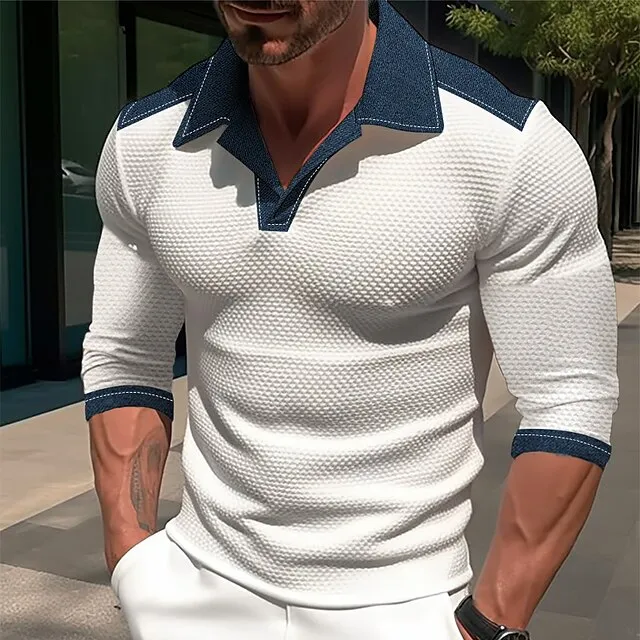 Men’s Polo Shirt Golf Shirt Casual Sports Lapel Long Sleeve Fashion Basic Color Block Sexy Spring & Fall Regular Fit Wine Black White Navy Blue Polo Shirt
