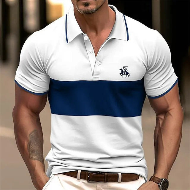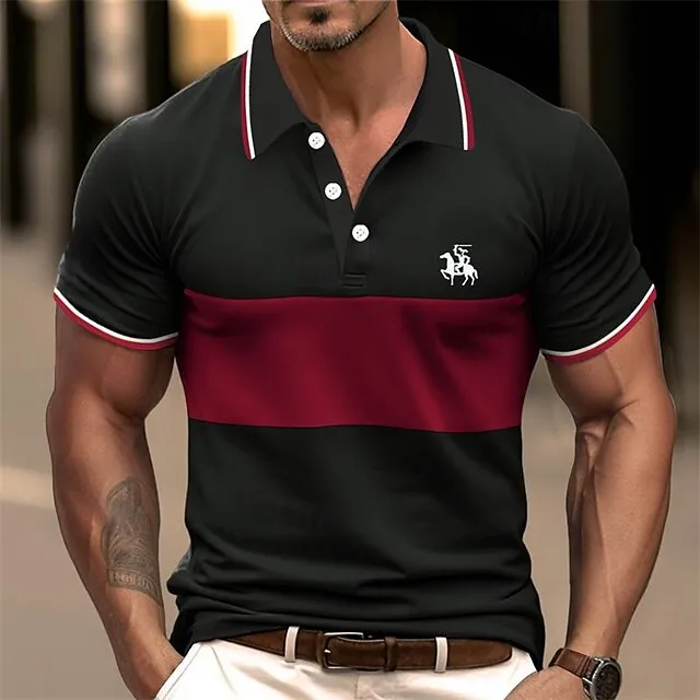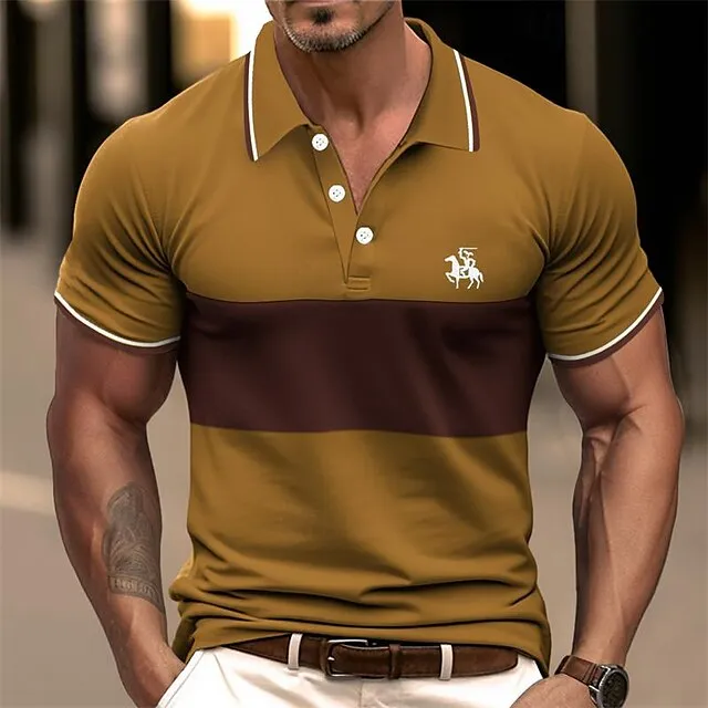Men’s Polo Shirt Golf Shirt Casual Sports Lapel Short Sleeve Fashion Basic Color Block Patchwork Embroidered Summer Regular Fit Black White Navy Blue Brown Polo Shirt