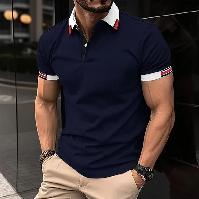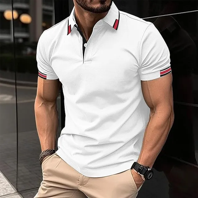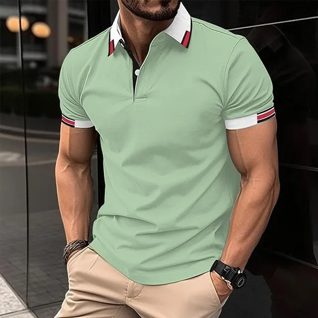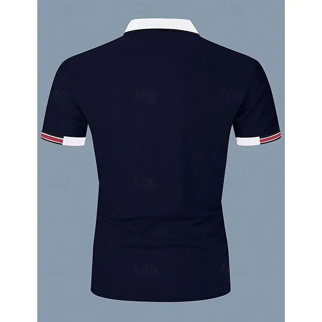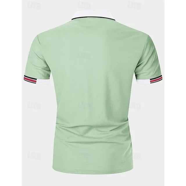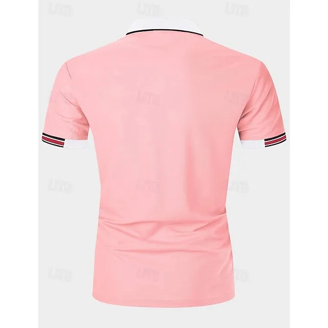 Men’s Polo Shirt Golf Shirt Casual Sports Lapel Short Sleeve Fashion Basic Color Block Patchwork Summer Regular Fit White Pink Red Navy Blue Green Polo Shirt