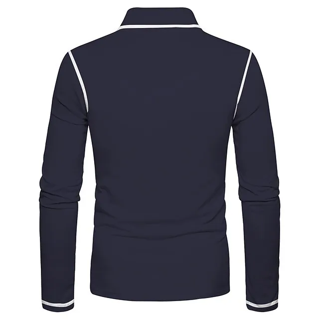 Men’s Polo Shirt Golf Shirt Street Casual Polo Collar Classic Long Sleeve Fashion Designer Solid Colored Patchwork Button Front Spring & Fall Regular Fit Wine Navy Blue Polo Shirt