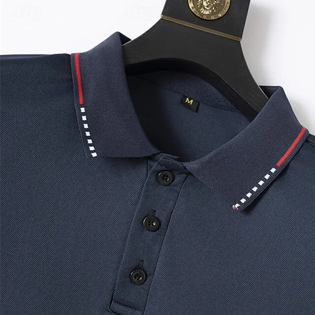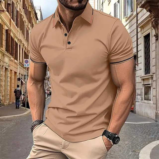 Men’s Polo Shirt Golf Shirt Work Casual Lapel Short Sleeve Basic Modern Plain Button Spring & Summer Regular Fit Dark Pink White Pink Khaki Light Grey Light Blue Polo Shirt
