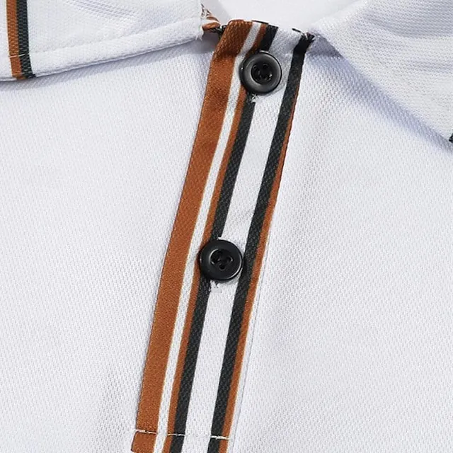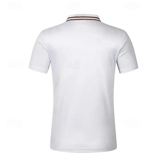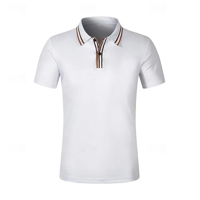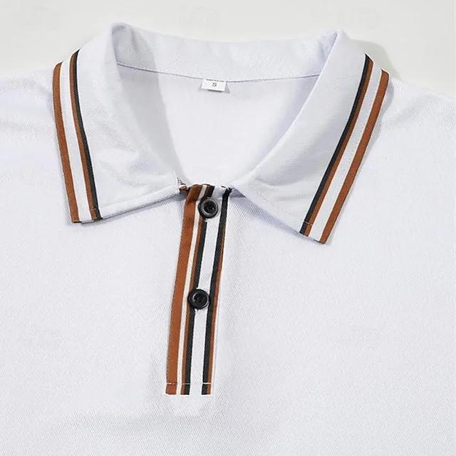 Men’s Polo Shirt Golf Shirt Work Casual Lapel Short Sleeve Basic Modern Stripes Patchwork Spring & Summer Regular Fit White Yellow Pink Green Light Blue Polo Shirt