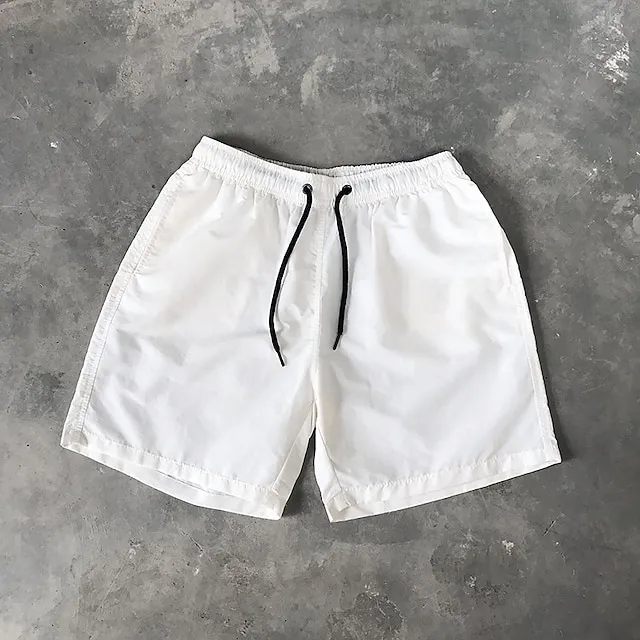 Men’s Shorts Beach Shorts Elastic Drawstring Design Plain Comfort Breathable Knee Length Casual Daily Beach Fashion Streetwear Black White Micro-elastic
