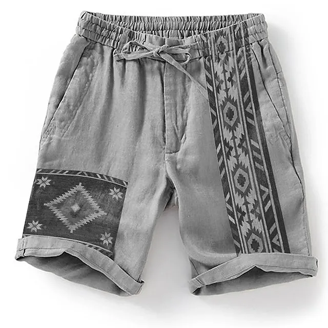 Men’s Shorts Summer Shorts Beach Shorts Drawstring Elastic Waist 3D Print Graphic Breathable Soft Short Casual Daily Holiday Cotton Blend Designer Ethnic Style Blue Khaki Micro-elastic