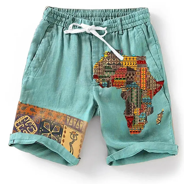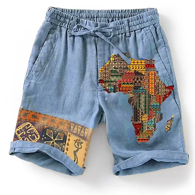 Men’s Shorts Summer Shorts Beach Shorts Drawstring Elastic Waist 3D Print Graphic Breathable Soft Short Casual Daily Holiday Cotton Blend Designer Ethnic Style Blue Khaki Micro-elastic