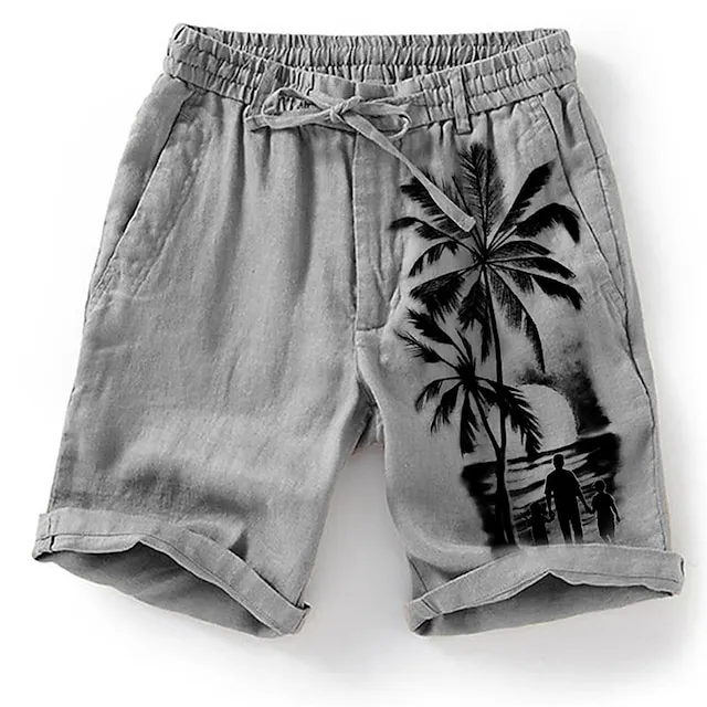 Coconut Tree Printed Men’s Cotton Shorts Summer Hawaiian Shorts Beach Shorts Drawstring Elastic Waist Print Comfort Breathable Short Outdoor Holiday Going out Clothing