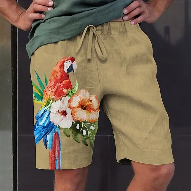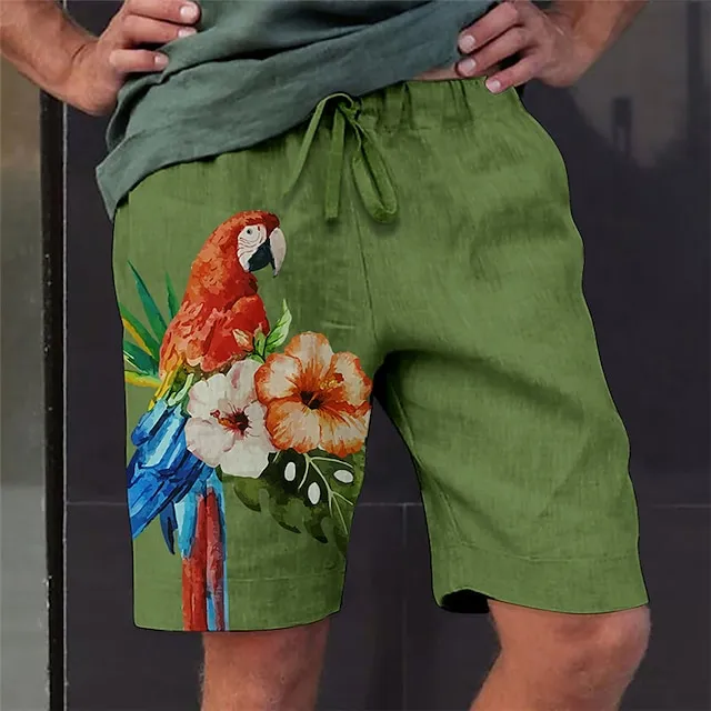 Men’s Shorts Summer Shorts Beach Shorts Drawstring Elastic Waist 3D Print Graphic Flower / Floral Breathable Soft Short Casual Daily Holiday Streetwear Hawaiian Green Khaki Micro-elastic