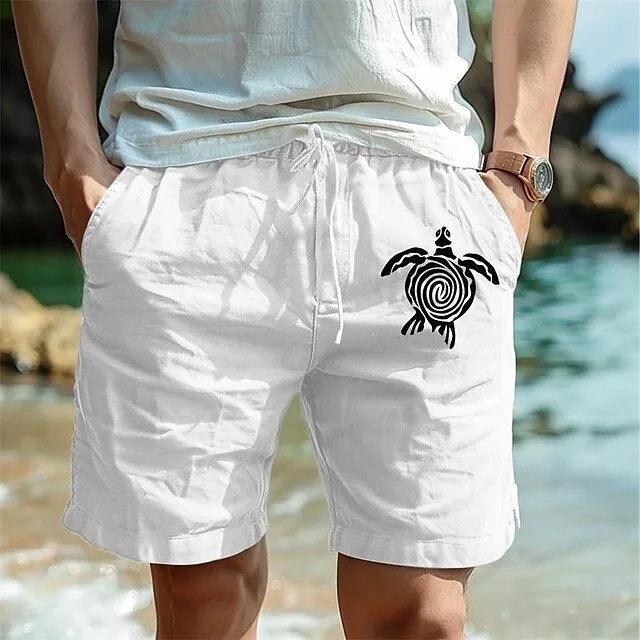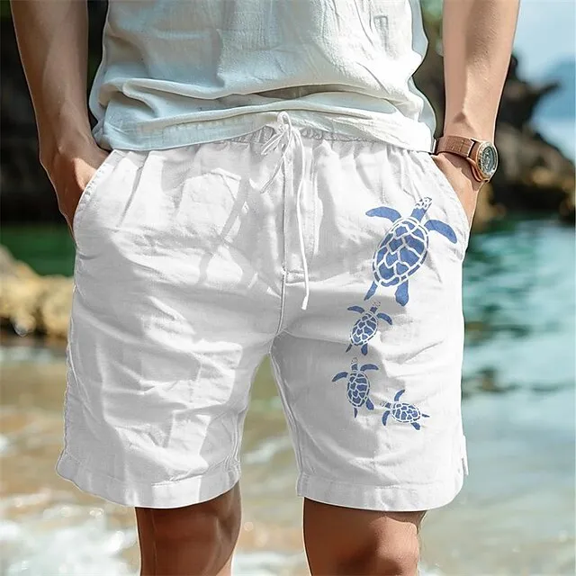 Men’s Cotton Shorts Summer Shorts Beach Shorts Print Drawstring Elastic Waist Animal Ocean Comfort Breathable Short Outdoor Holiday Going out Cotton Blend Hawaiian Casual White Army Green