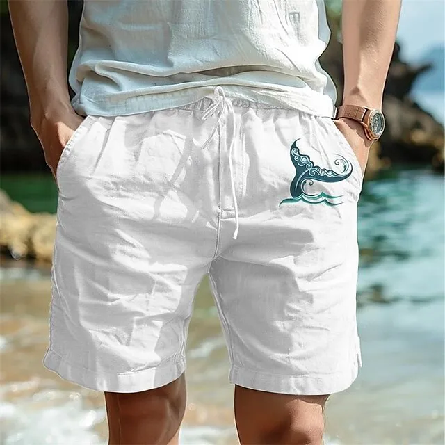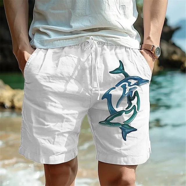 Men’s Shorts Summer Shorts Beach Shorts Drawstring Elastic Waist Print Animal Ocean Comfort Breathable Short Outdoor Holiday Going out Cotton Blend Hawaiian Casual Black-White White & Blue