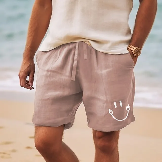Men’s Shorts Summer Shorts Beach Shorts Print Drawstring Elastic Waist Cartoon Comfort Breathable Short Outdoor Holiday Going out Cotton Blend Hawaiian Casual White Pink
