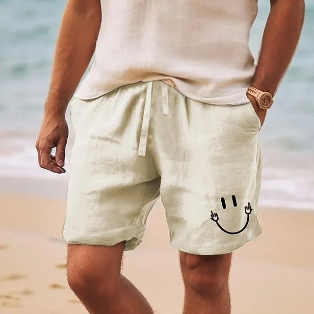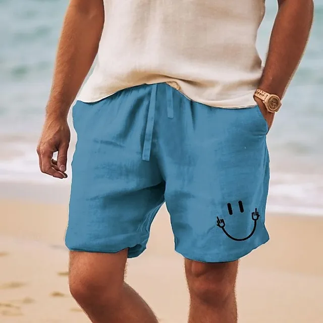 Men’s Cotton Shorts Summer Shorts Casual Shorts Drawstring Elastic Waist Front Pocket Sun Graphic Prints Breathable Soft Short Outdoor Casual Daily Ethnic Style Retro Vintage White Blue Micro-elastic