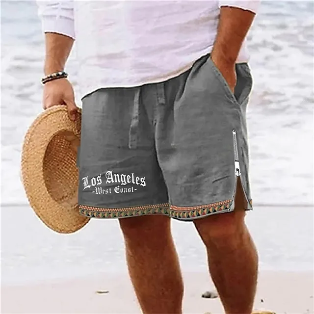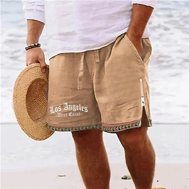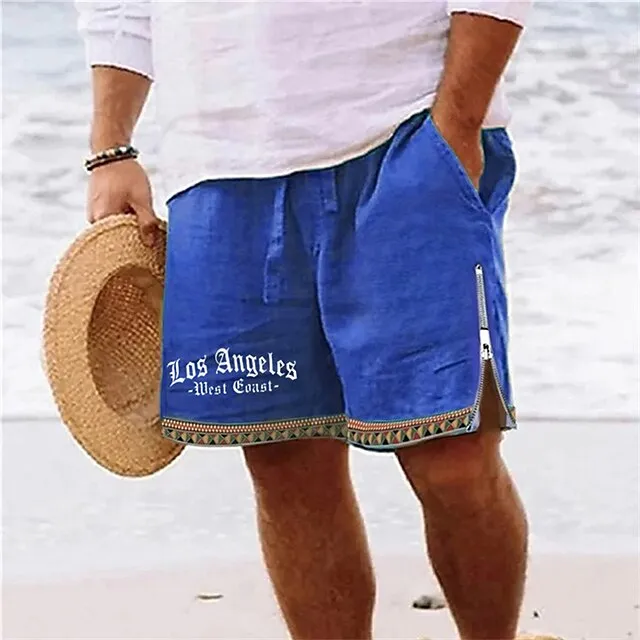 Men’s Shorts Summer Shorts Beach Shorts Print Zipper Drawstring Letter Comfort Breathable Short Daily Holiday Going out Cotton Blend Hawaiian Casual Army Green Royal Blue