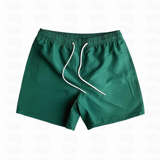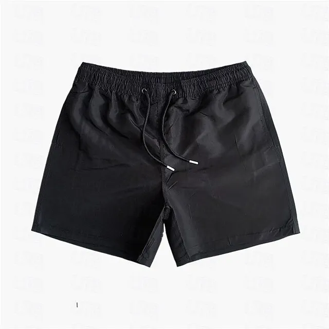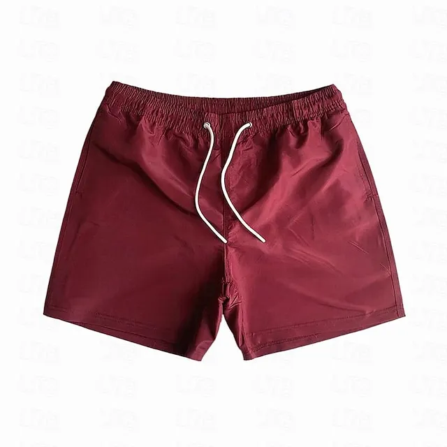 Men’s Swim Shorts Shorts Beach Shorts Drawstring Elastic Waist Plain Comfort Quick Dry Short Holiday Beach Weekend Fashion Casual Black Dark Red Micro-elastic