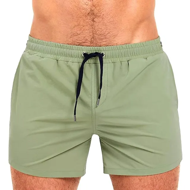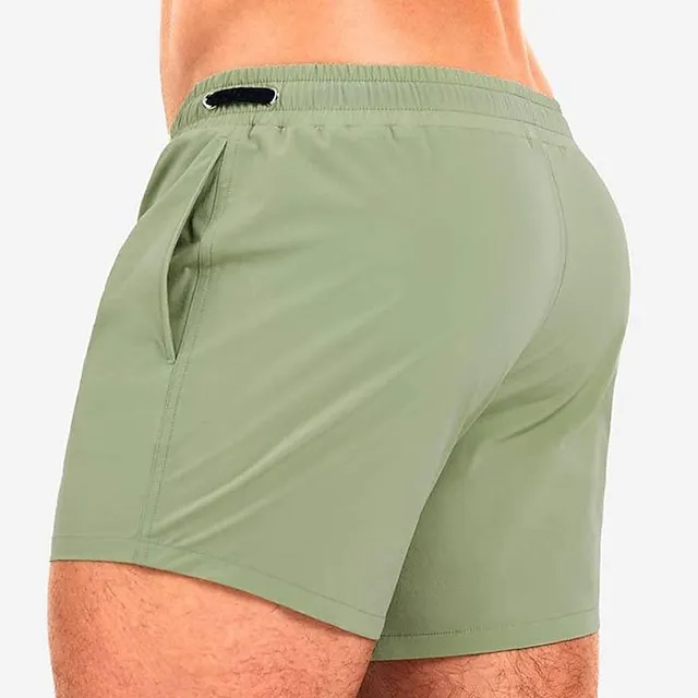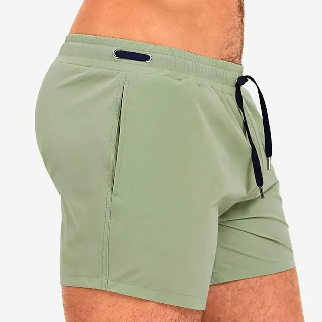 Men’s Board Shorts Swim Shorts Swim Trunks Drawstring Elastic Waist Elastic Drawstring Design Solid Colored Quick Dry Sports Short Daily Going out Beach Streetwear Casual Grass Green Black