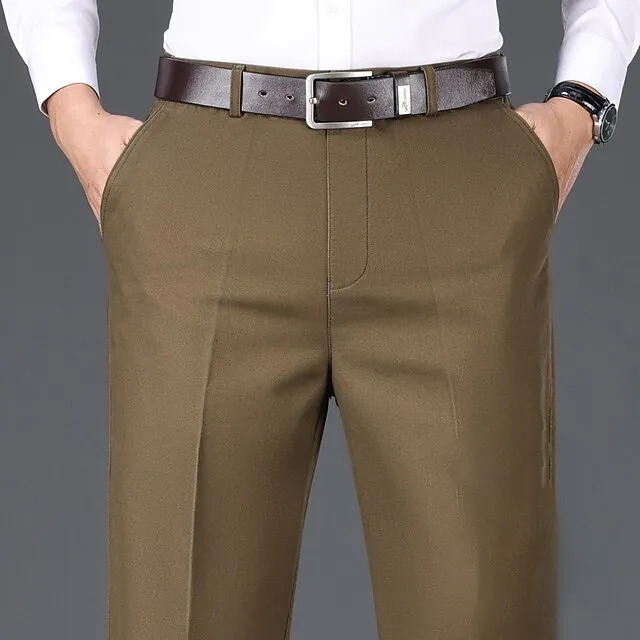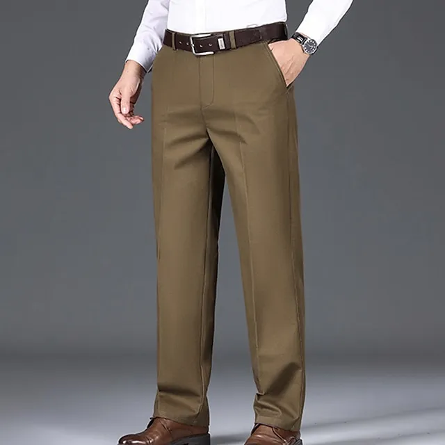 Men’s Trousers Chinos Chino Pants Pocket Plain Comfort Breathable Outdoor Daily Going out 100% Cotton Fashion Casual Black Khaki